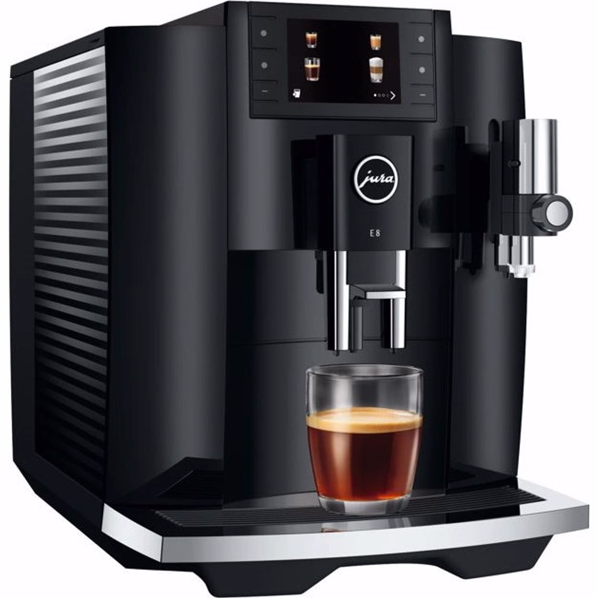 Jednu z nejznámějších designových soutěží Red Dot Award vyhrál kávovar Jura E8 díky elegantnímu vzhledu s chromovými detaily, použitým technologiím a snadné obsluze z přední strany. Kávovar pořídíte v několika barevných kombinacích, my jsme jako příklad zvolili variantu v nadčasové černé Jura E8 Piano Black. Uživatelé si jej nemohou vynachválit a tento model patří dlouhodobě ke špičce mezi oblíbenými přístroji.