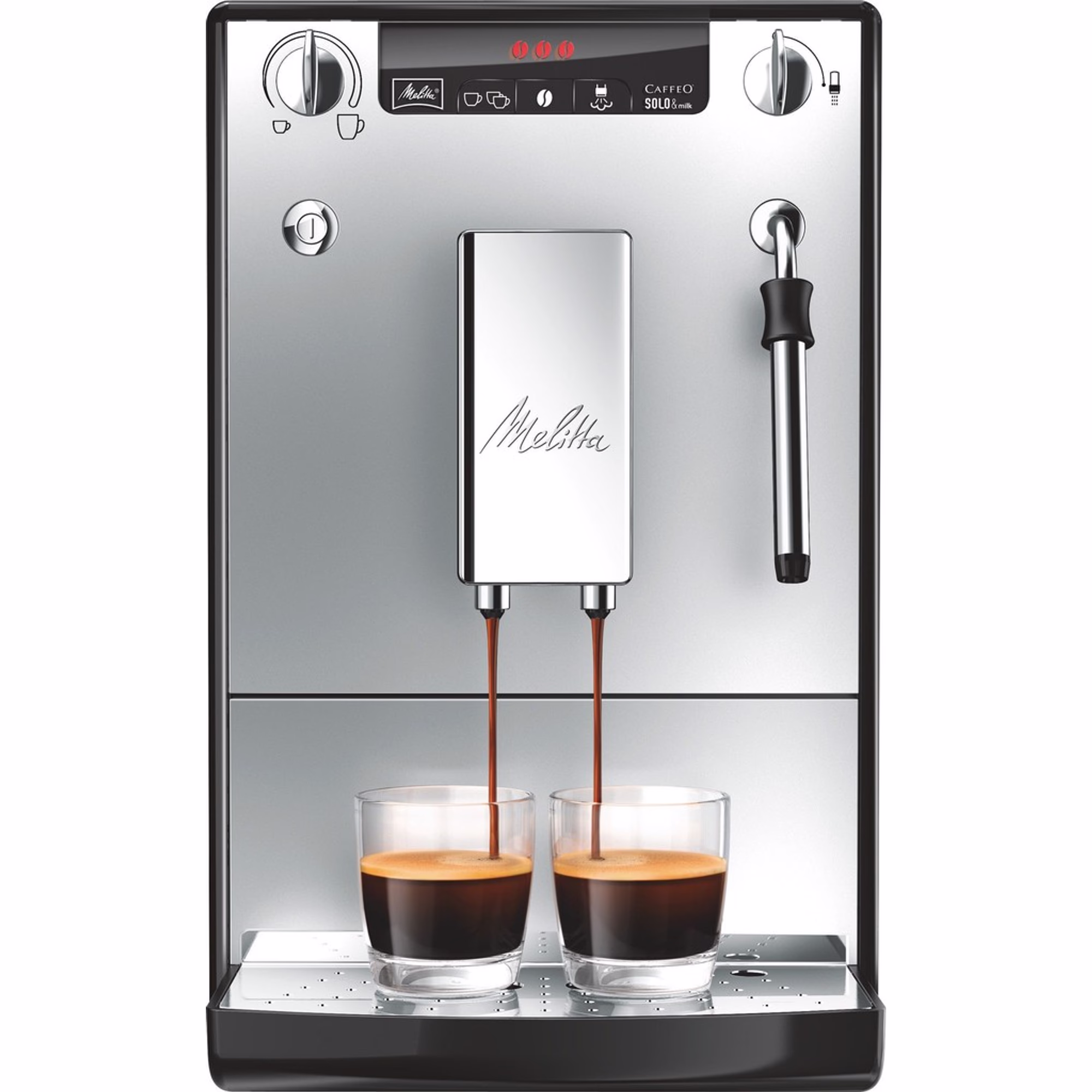 Mezi nejstylovějšími značkami automatických kávovarů nesmí chybět ani Melitta, i když samotné ocenění získal profesionální přístroj Melitta Cafina XT6. Ten je k dostání jen na objednání za bezmála 340 tisíc a počkali byste si na něj několik měsíců. Proto jsme vybrali kávovar od stejné značky Melitta Caffeo Solo & Milk E953-202, který má stejně jako jeho profesionální příbuzný ladné linie v nadčasové kombinaci stříbrné a černé. Přehledný displej usnadňuje ovládání a zároveň nijak nenarušuje čistý vzhled přístroje.