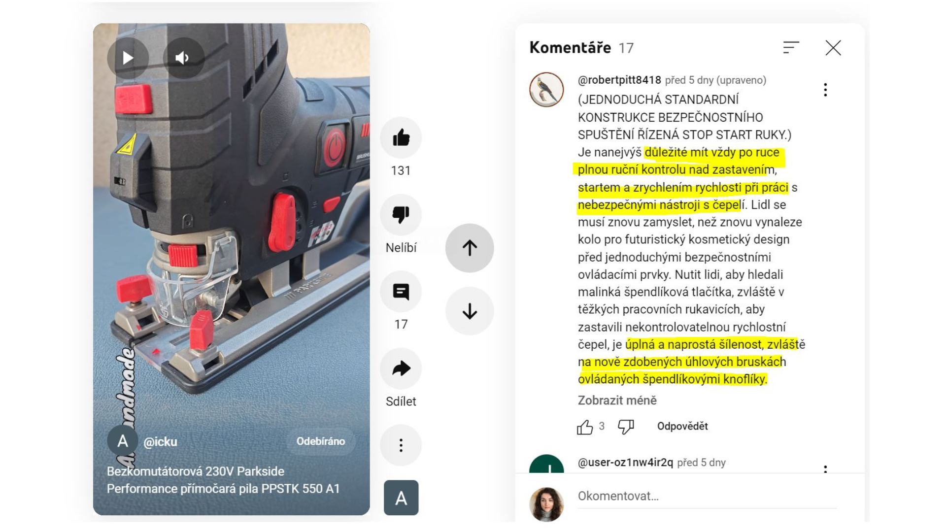 Komentář pod videem (automatický překlad)