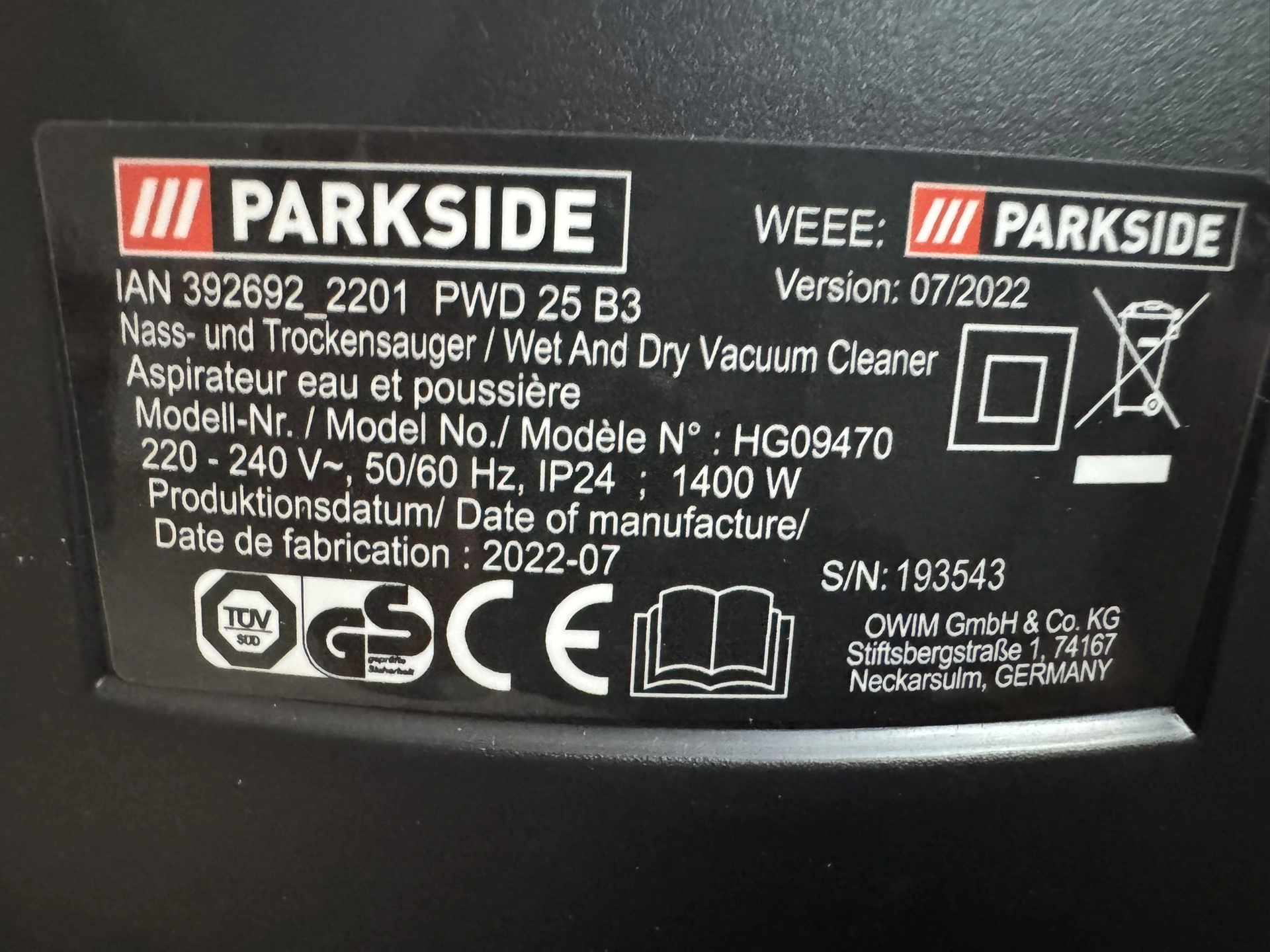 Každý produkt Parkside má výrobní štítek, kde je uveden dodavatel. Ten je uveden také na originálním obalu a v uživatelské příručce. Přímo na e-shopu Lidl v sekci “Portál zákaznických služeb” → “Zboží” můžete podle modelového označení nebo EAN kódu vyhledat detailní informace k produktu včetně uživatelské příručky s kontaktem na dodavatele a servis.