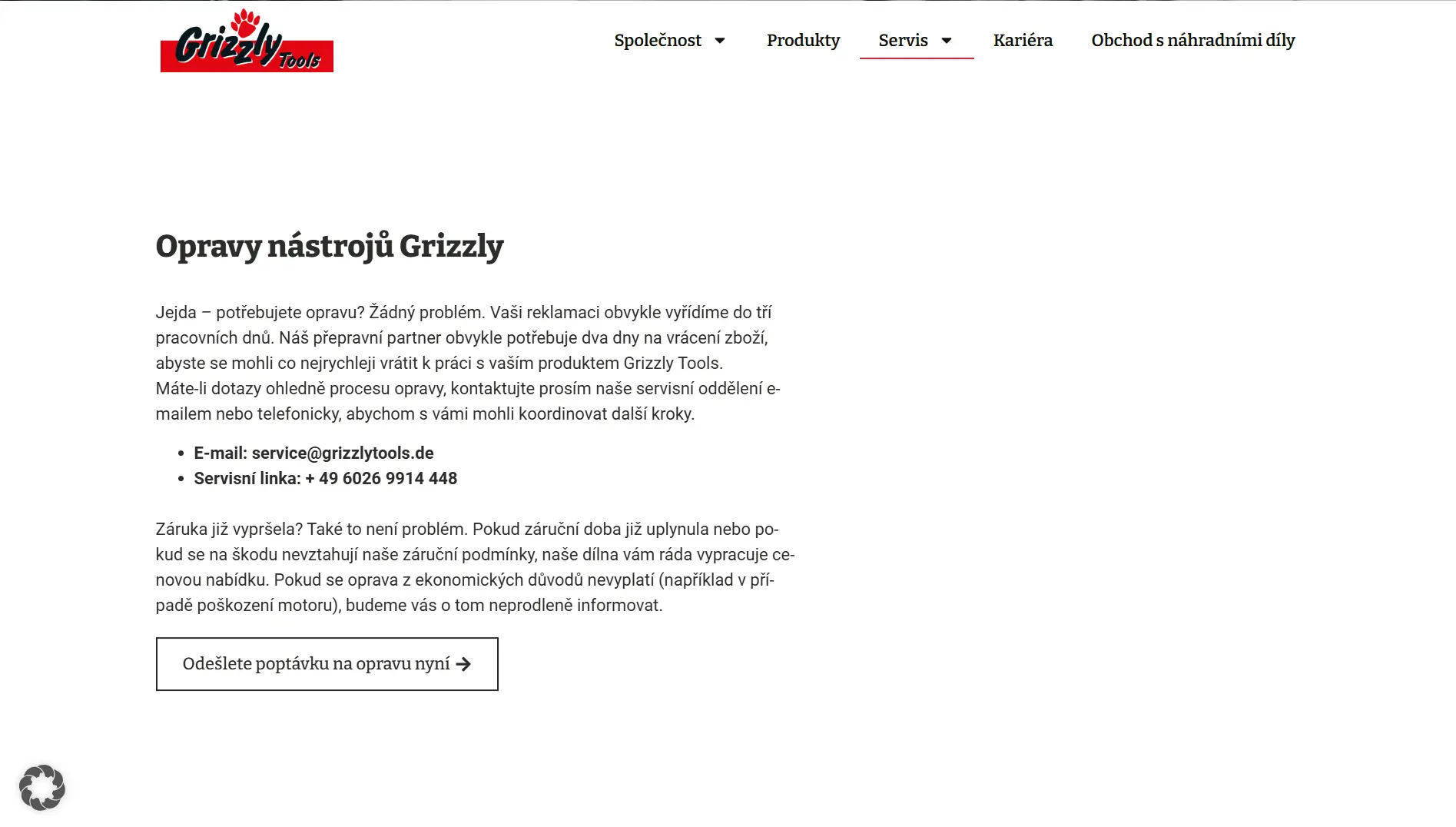 Společnost Grizzly Tools má na svém webu kontakt na servis za účelem pozáruční opravy svých produktů. Zároveň na webu prodává některé náhradní díly a příslušenství. Mimo jiné nabízí také instalaci a zimní servis robotických sekaček Parkside.