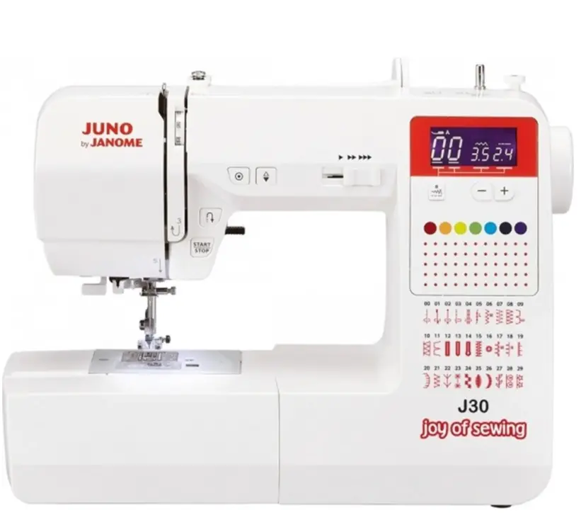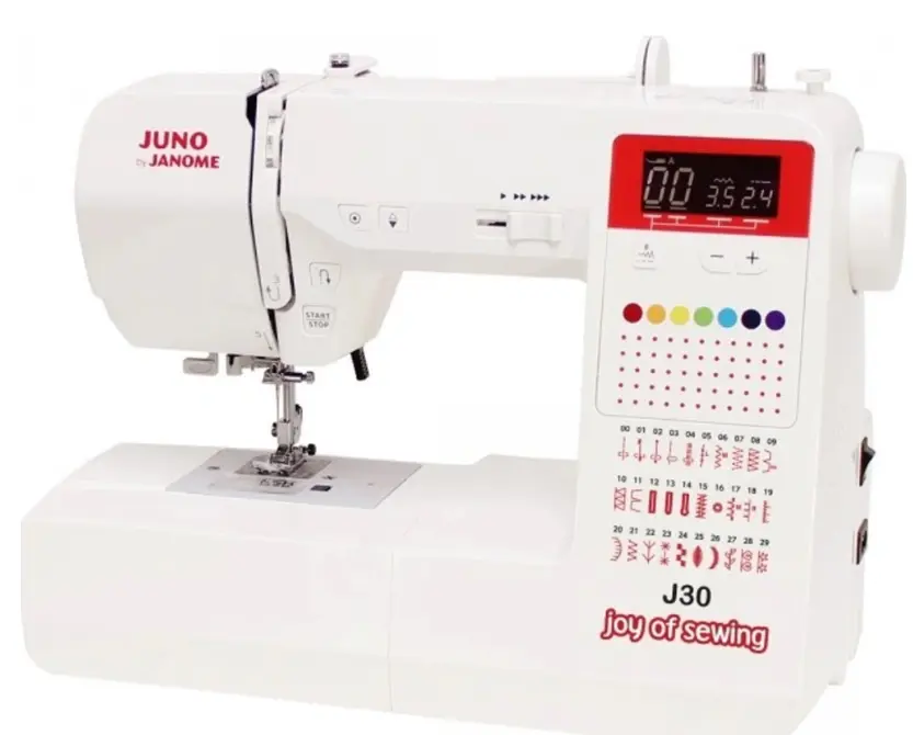 Janome Juno J30 nabízí až 30 programům, automatické funkce a intuitivní ovládání. Jednoduše a intuitivně se ovládá a práci s ním zvládnou i začátečníci nebo švadleny, které přecházejí z manuálního šicího stroje.  Hodí se jak na běžné domácí úpravy jako zkrácení kalhot, opravu švů, tak i na kreativnější projekty, kde využijete dekorativní stehy.