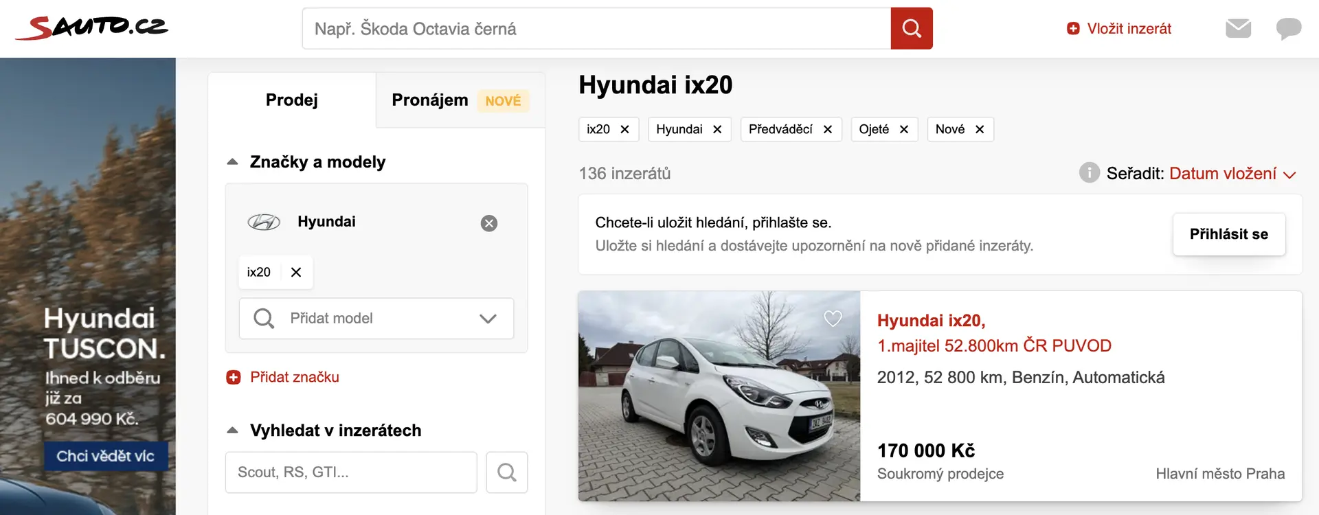Foto: Screenshot, sauto.czBazarový Hyundai ix20 lze sehnat poměrně zachovalý za dobrou cenu