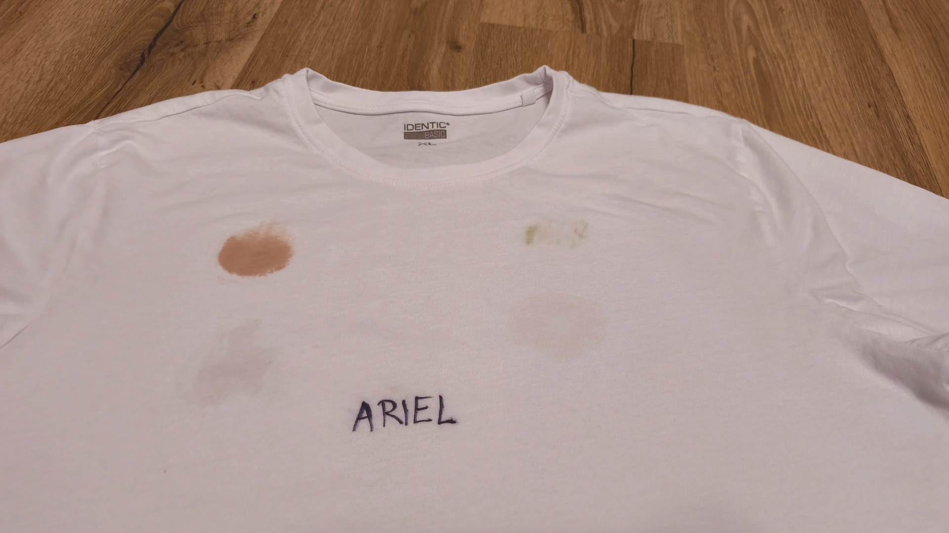 Postup byl stejný jako u každého testovaní: na bílá bavlněná trička jsme nanesli skvrny od make-upu, trávy, opalovacího krému a kečupu, nechali je zaschnout, namočili ve vodě a použili doporučenou dávku prášku pro silně znečištěné prádlo podle obalu. Po 30 minutách působení jsme prali na 40 °C v běžném programu, trička usušili a každou skvrnu samostatně ohodnotili na škále 0–10 bodů. Součet 0–40 ukazuje celkovou účinnost na skvrny.