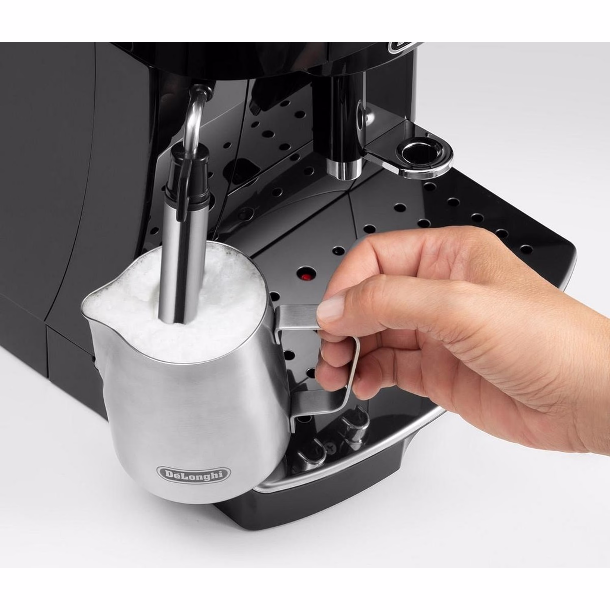 Tento model může být ideální volbou pro každého, kdo chce rychlou a voňavou čerstvou kávu bez složité obsluhy. Součástí je ocelový mlýnek nabízející 13 stupňů mletí, parní tryska pro přípravu mléčné pěny a ovládací panel s možností osobního nastavení aroma i velikosti kávy, které lze uložit do paměti. Na rozdíl od modelu DeLonghi Magnifica S je navíc jeho ovládání dotykové.