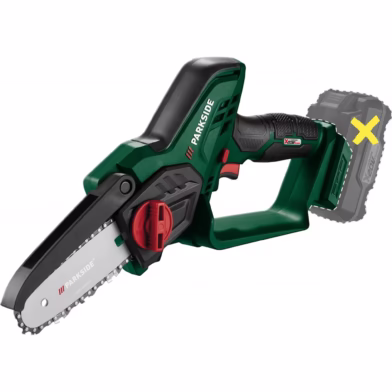 Aku pila Parkside je určena pro řezání větví, dosahuje rychlosti řetězu cca 8 m/s a délky řezu cca 15 cm. Je dodávána bez akumulátoru.