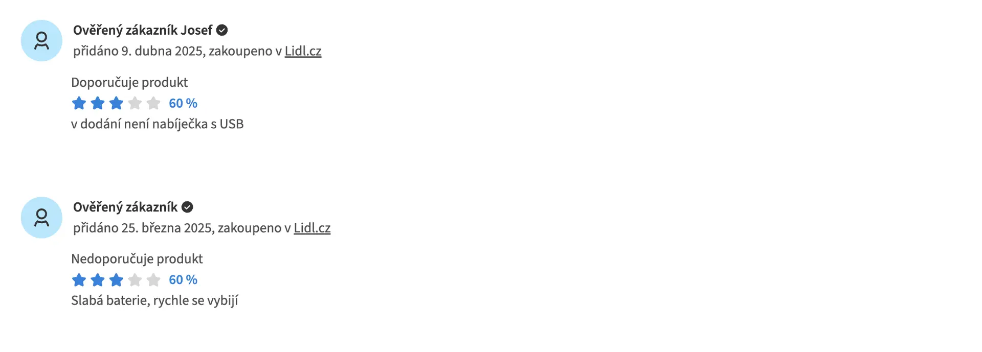 Příklad uživatelských recenzí: