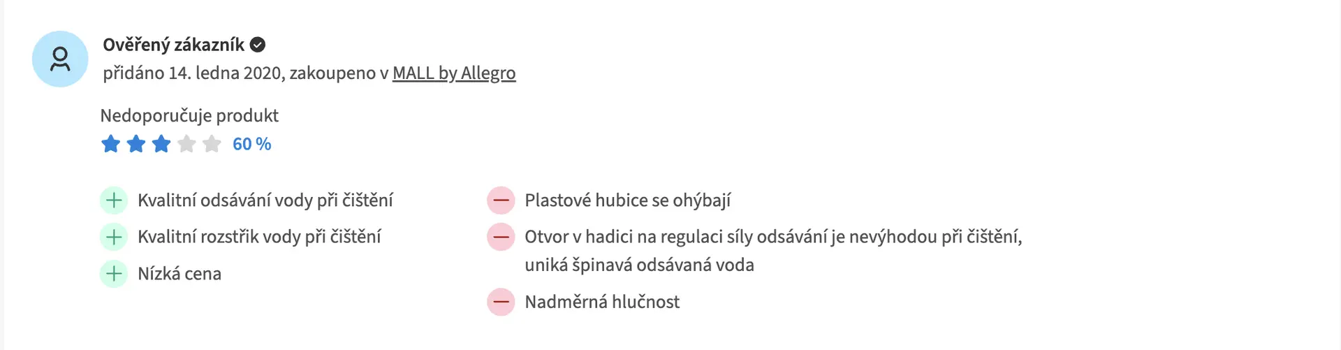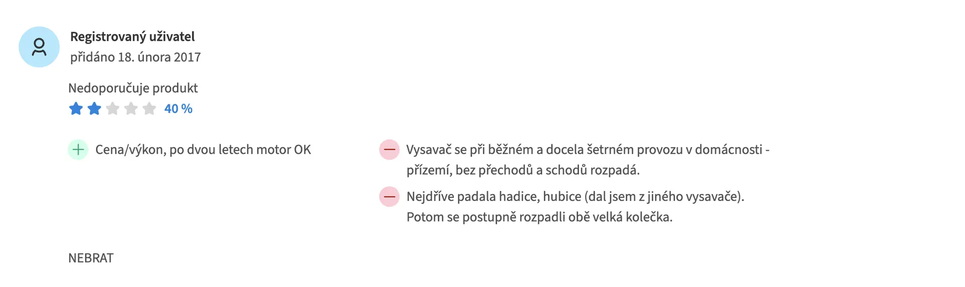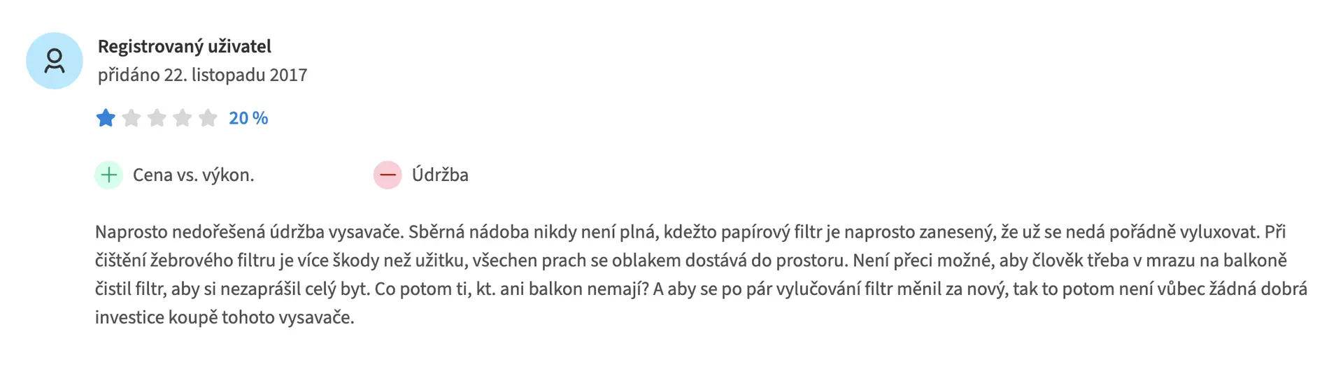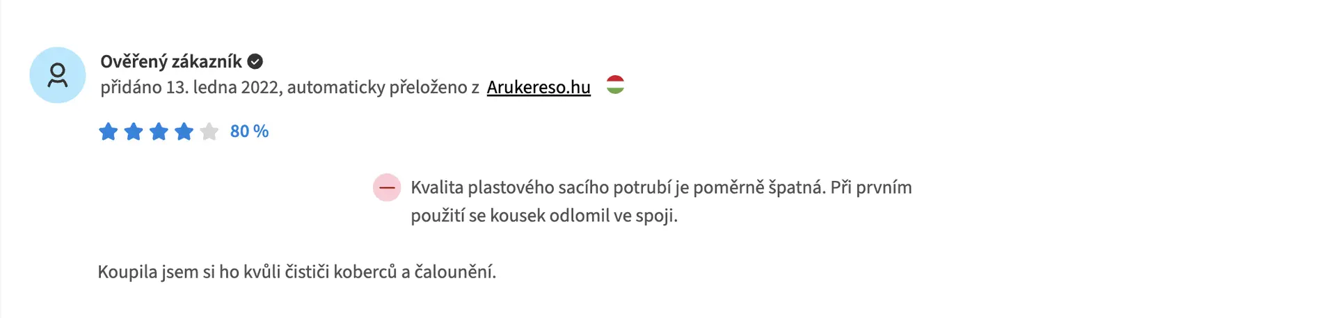 Foto: Vlastní screenshot, Heureka.czUkázka uživatelské recenze
