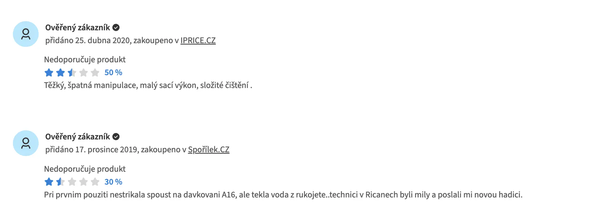 Foto: Vlastní screenshot, Heureka.czUkázka uživatelských recenzí