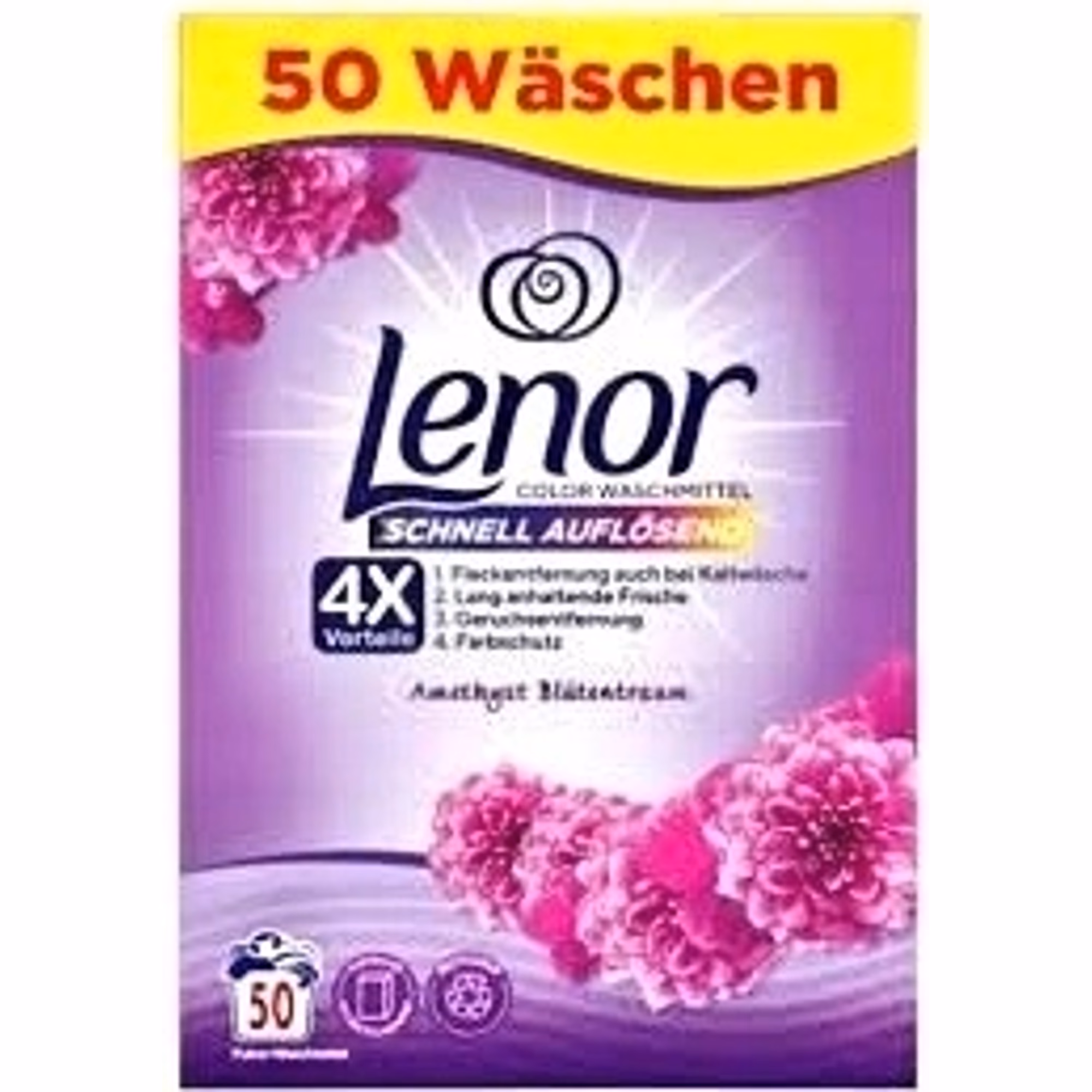 Lenor Color Amethyst Blütentraum je prací prášek na barevné prádlo s příslibem dlouhotrvající vůně – výrobce uvádí, že by měla vydržet až dvakrát déle než běžné vůně. V našem testu nasbíral 32,5 bodu ze 40, nejvíc ze všech.