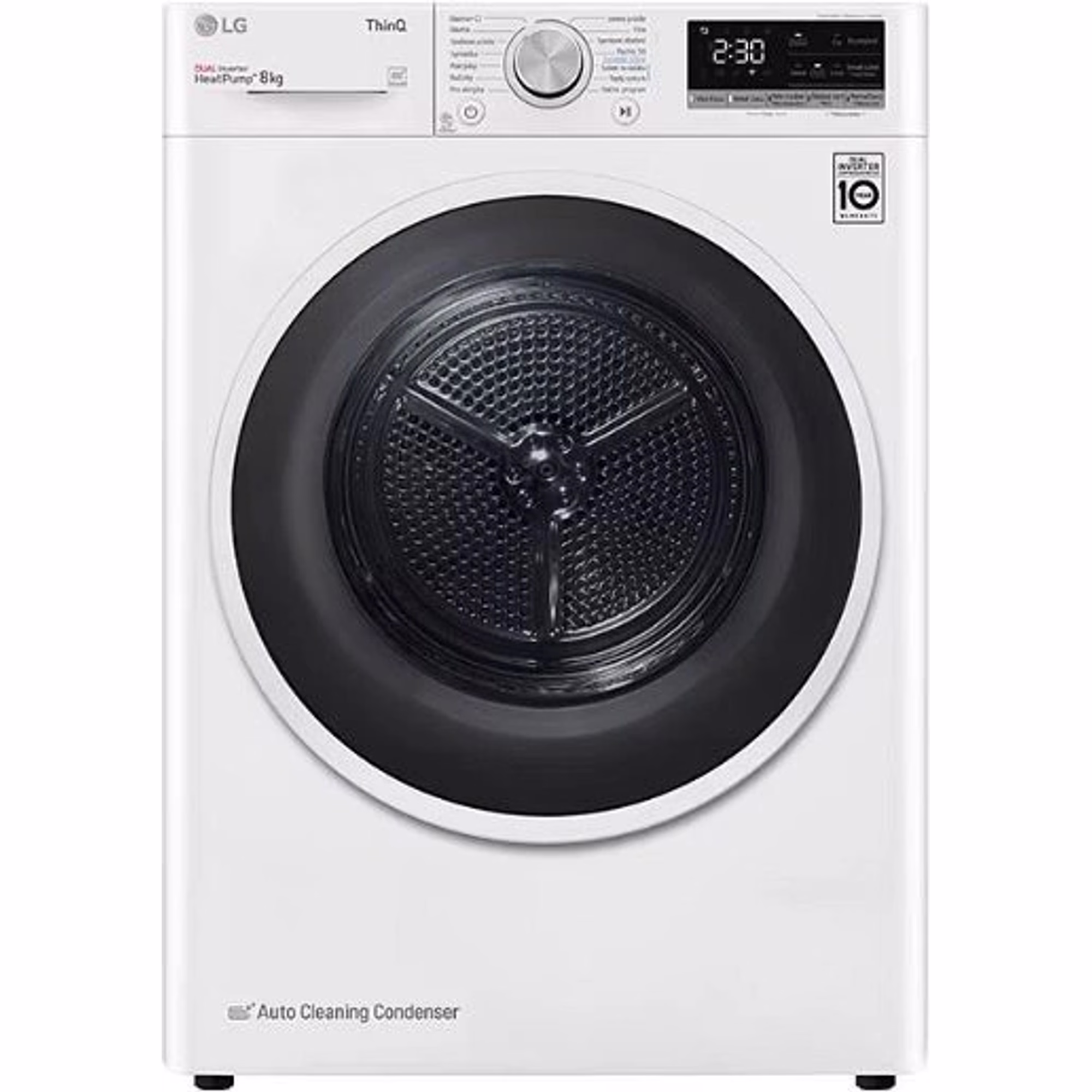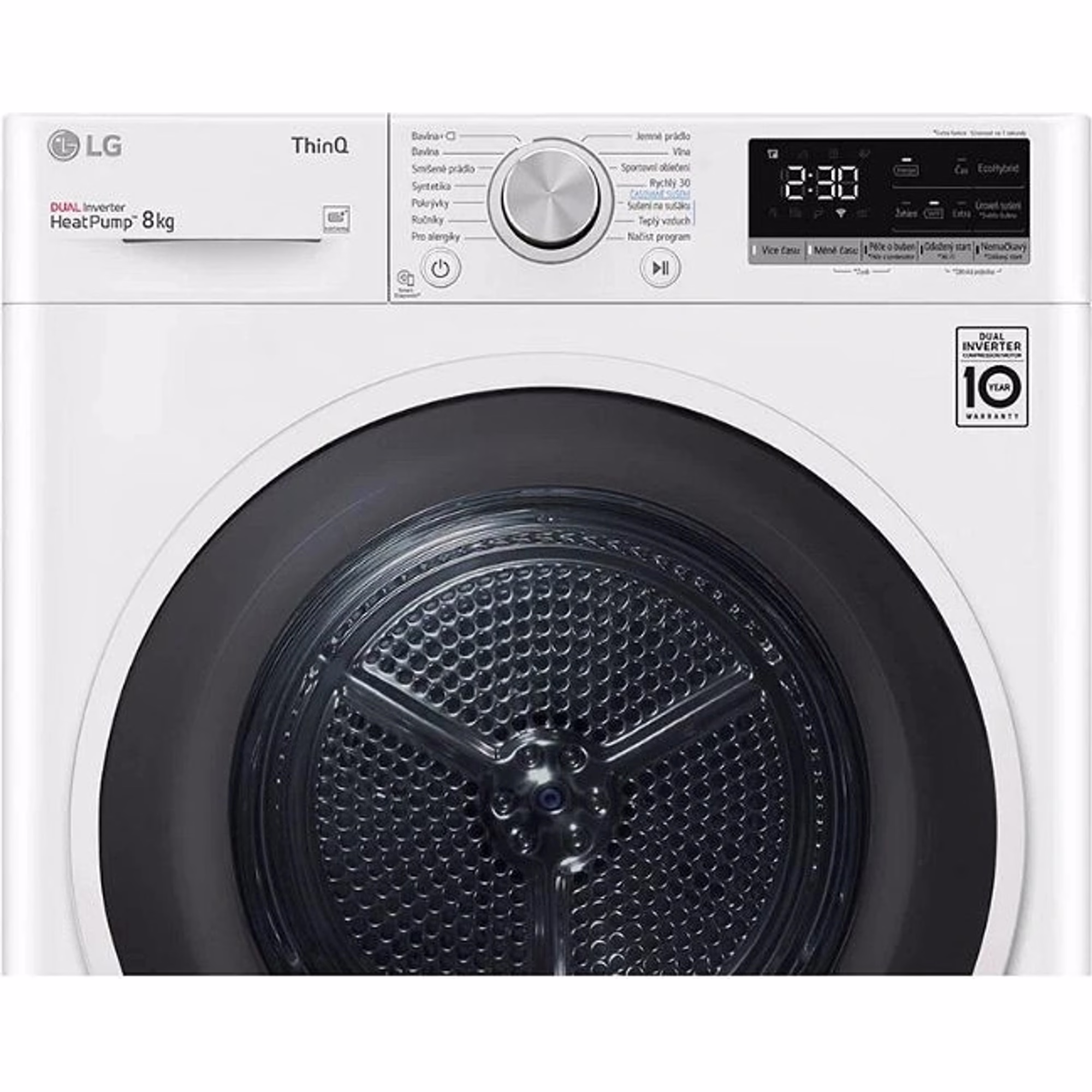 LG RC8TV9AVHN s kapacitou 8 kg nabízí chytré funkce pro ty, kteří mají rádi své domácí pomocníky připojeny k mobilnímu telefonu. Proto tato sušička disponuje Wi-Fi připojením, pomocí kterého se lze připojit k mobilní aplikaci ThinQ – tam si může uživatel nahrát spoustu nových programů, spustit diagnostiku a mnoho dalšího.
