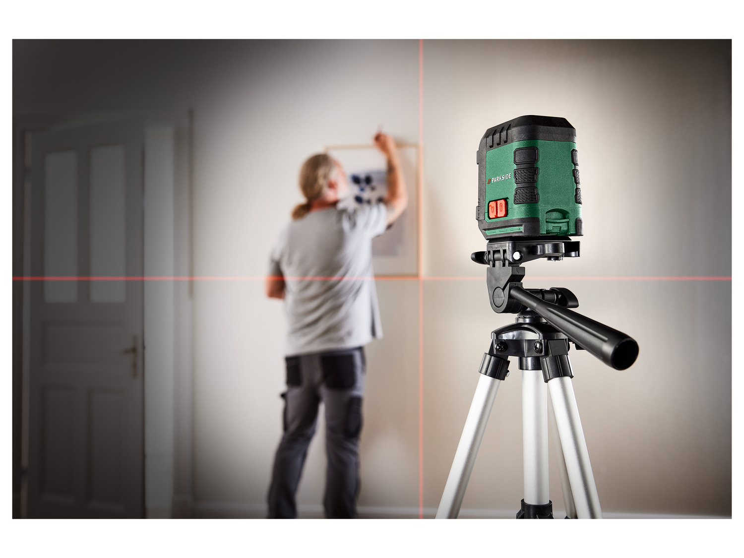 Jak komplikovaná je práce, když věšíte regál na zeď a nemáte po ruce nikoho, kdo by vám přidržel vodováhu. Pro takové případy je skvělým řešením křížový liniový laser se stativem Parkside PKLL 10 B4. Laser nabízí pracovní dosah až 10 metrůširoké využití při opravách a rekonstrukcích (obkládání, zavěšení regálů, suchá/mokrá stavba apod.).