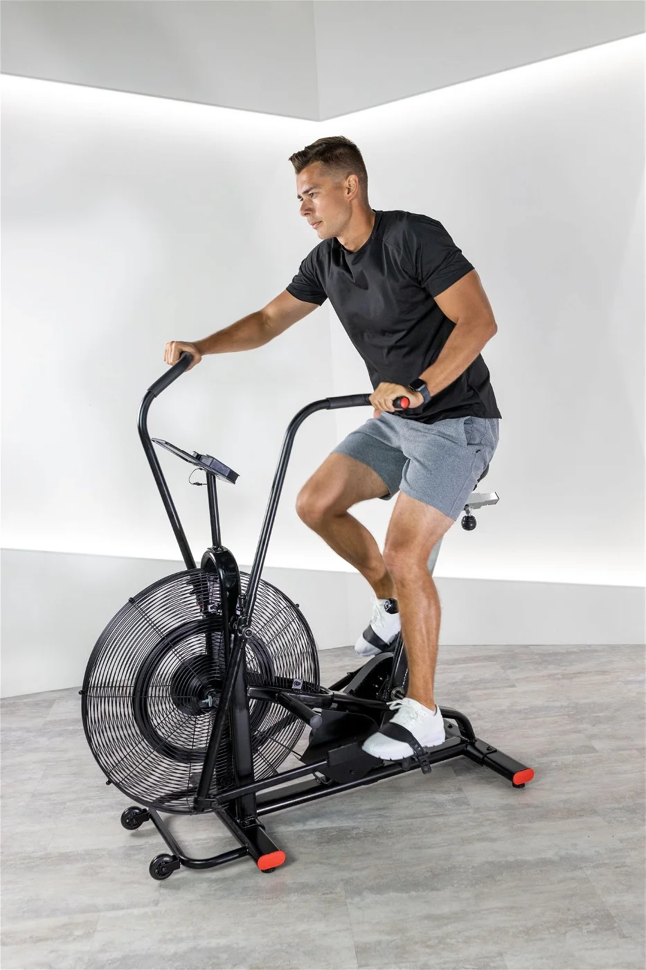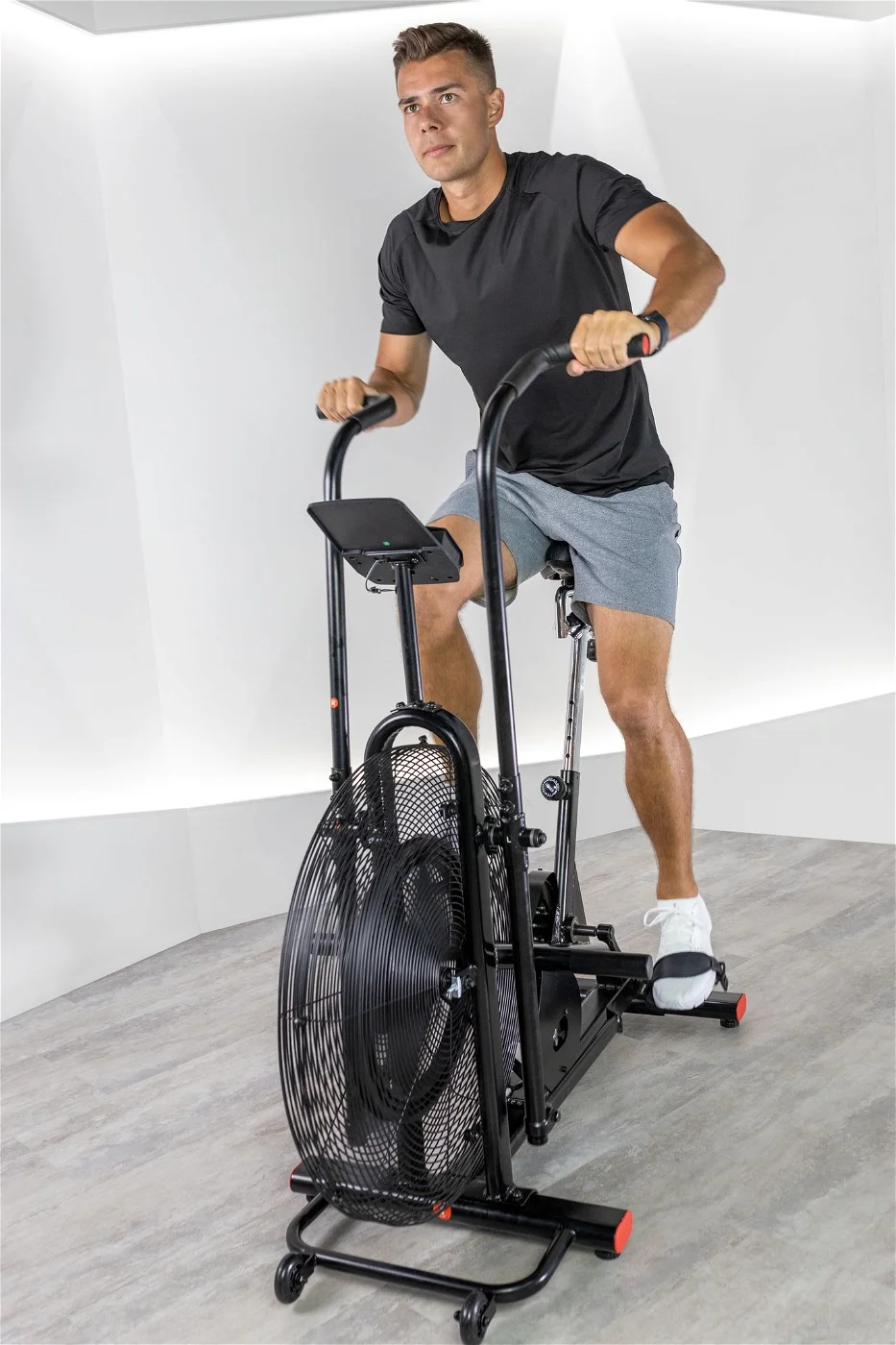 - Procvičení celého těla – AirBike Stormred Giant je navržen tak, aby umožňoval intenzivní trénink jak dolních, tak horních končetin současně, a to díky pohodlným madlům. Díky ergonomickému designu je možné aktivovat svaly nohou i paží, takže komplexně posílíte svaly celého těla.