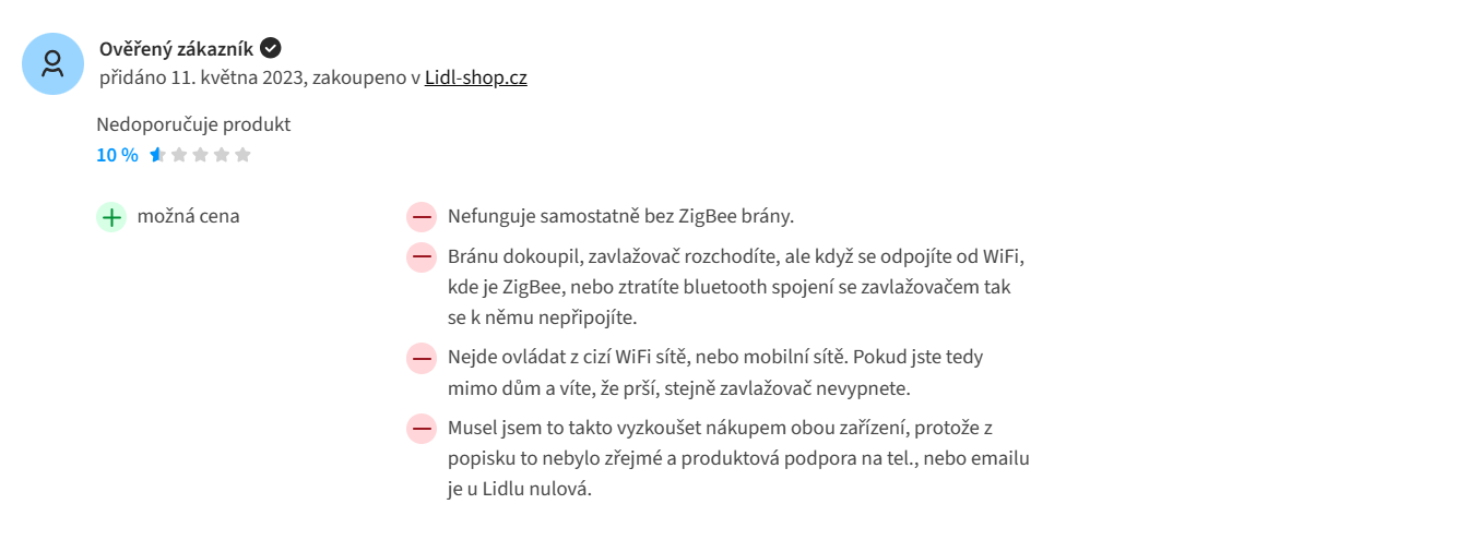 V recenzích si zákazníci stěžují především na to, že ačkoliv je zařízení popisováno jako chytré, lze jej ve skutečnosti ovládat pouze v malém prostoru kolem něj. Zapomenout tedy můžete na ovládání na dálku. To je možné pouze s dokoupením příslušné gateway, což není dostatečně zdůrazňováno. Zmiňováno je též problematické párování s telefonem, nebo nemožnost zpětně zjistit, zda zalévání proběhlo.