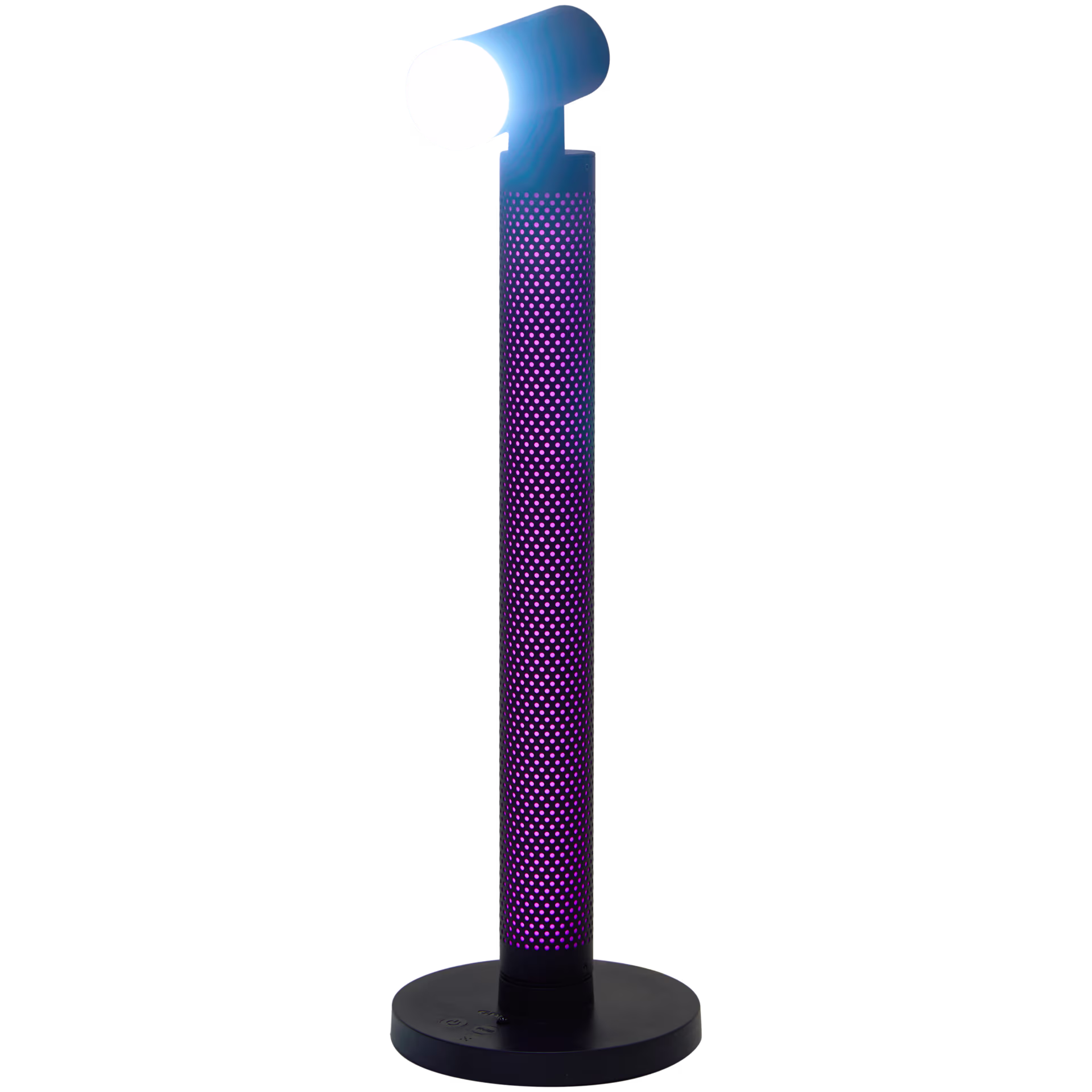 • Tělo lampy svítí po celé délce a mění odstíny od teplé červené přes fialovou až po chladnou modrou, takže v zešeřelém pokoji dělá spíš práci atmosférické dekorace než pracovního osvětlení.