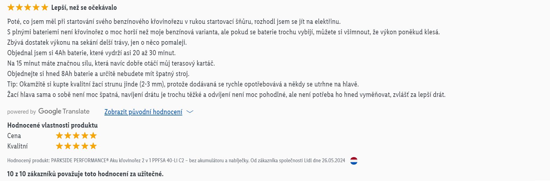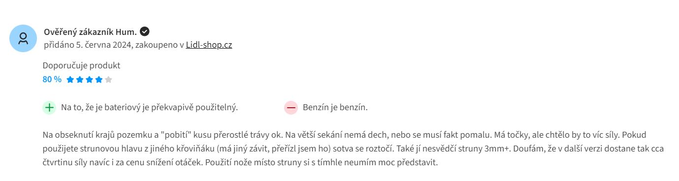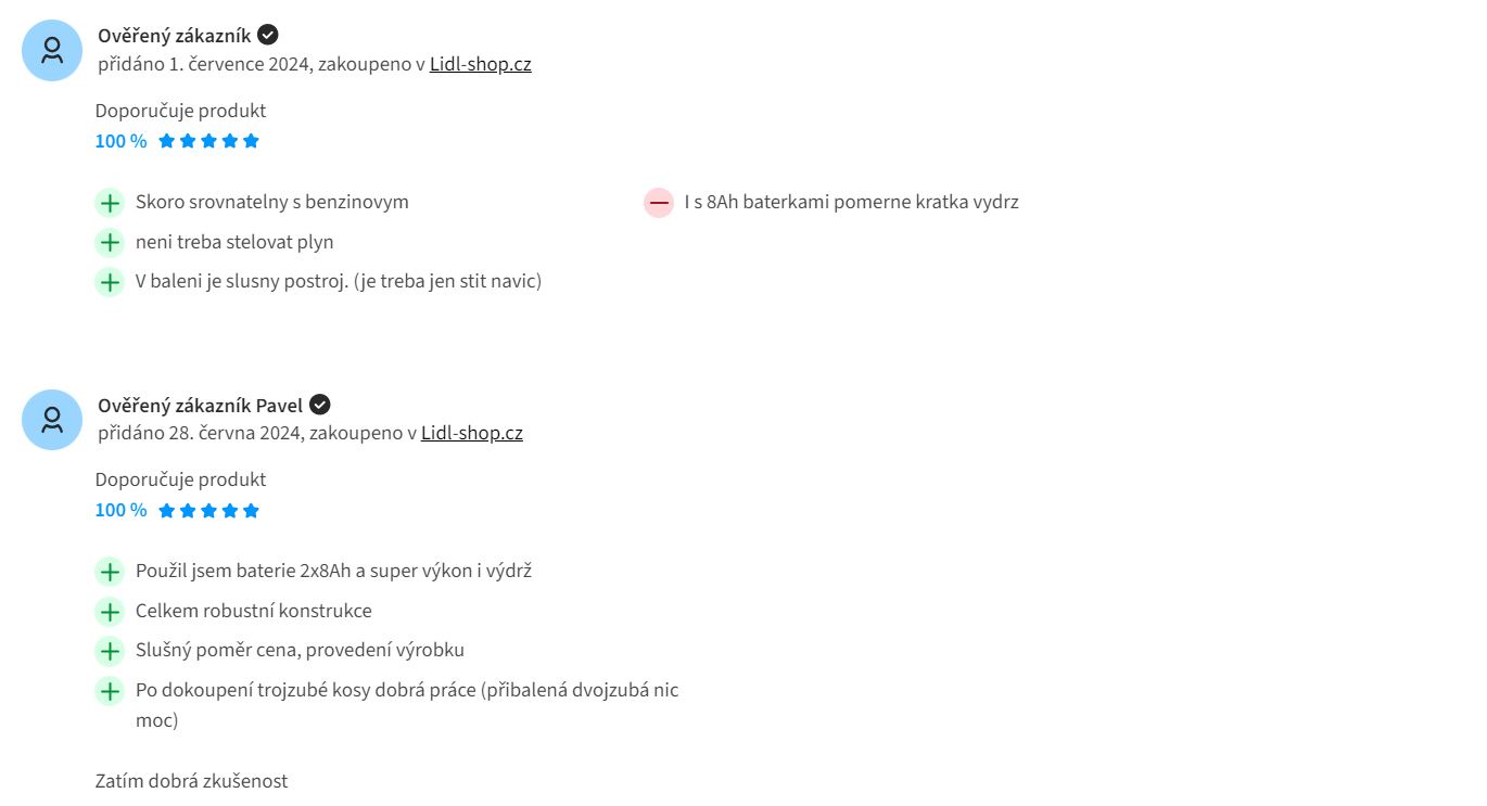 Příklady pozitivních recenzí (Heureka, Lidl):