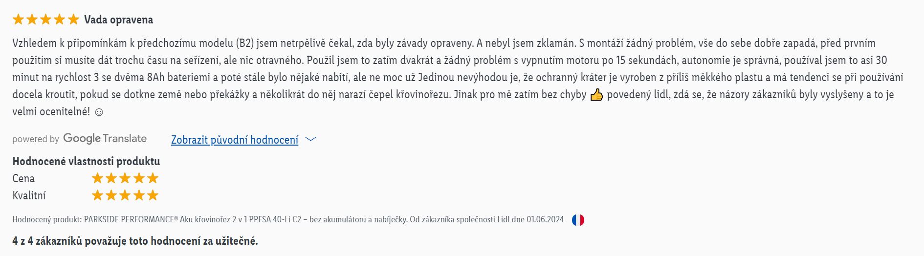 Akumulátorový křovinořez Parkside Performance PPFSA 40-Li C2 je letošní novinka, která je v generaci C2 dostupná teprve od poloviny května. Podařily se výrobci vychytat všechny mouchy nepovedené předchozí generace? Udělali jsme si průzkum prvních uživatelských recenzí, které vypadají velmi slibně.