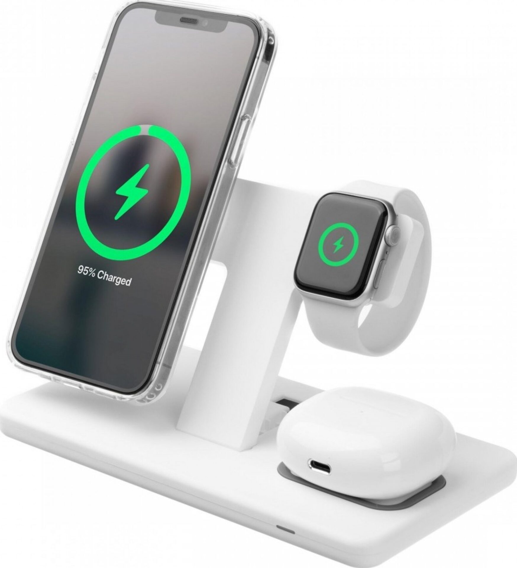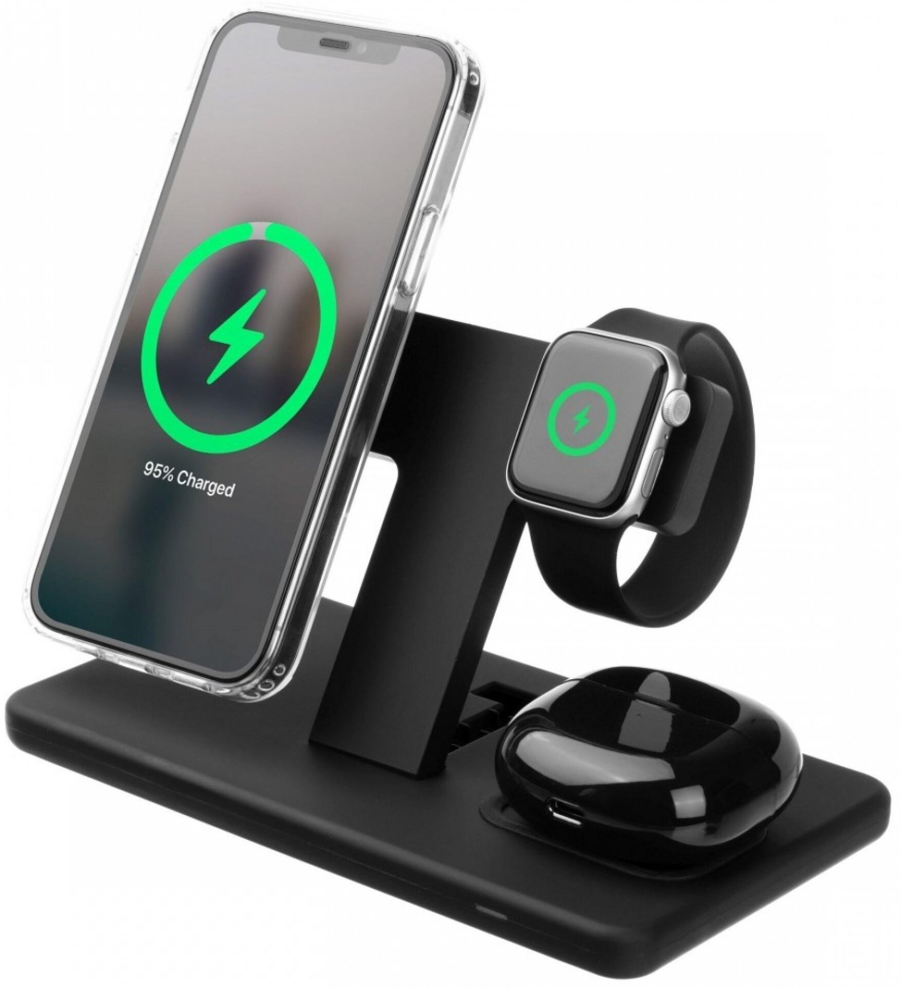 • Kompatibilita s Apple zařízeními – Tato stylová bezdrátová nabíječka plně podporuje plně vaše Apple zařízení, a to včetně iPhonu, Apple Watch i sluchátek AirPods. Eliminujete tak potřebu vlastnit několik drátových nabíječek, vystačíte si pouze s tímto šikovným pomocníkem. To nejenom ušetří místo, ale také usnadní váš každodenní život.