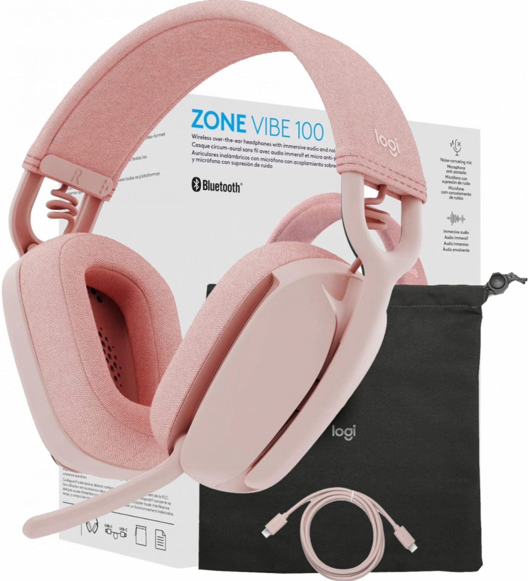- Design a komfort – Logitech Zone Vibe 100 jsou lehká bezdrátová sluchátka na uši, která váží pouze 185 gramů. Náušníky z paměťové pěny a textilní hlavový most přispívají k jejich komfortu při dlouhém používání.