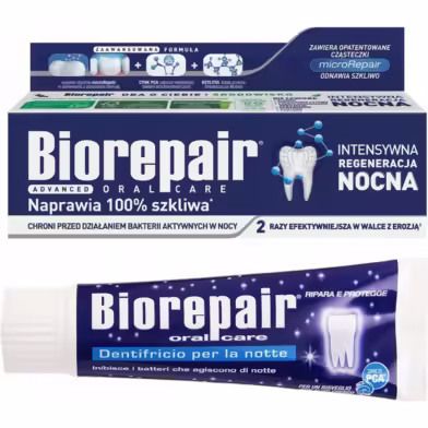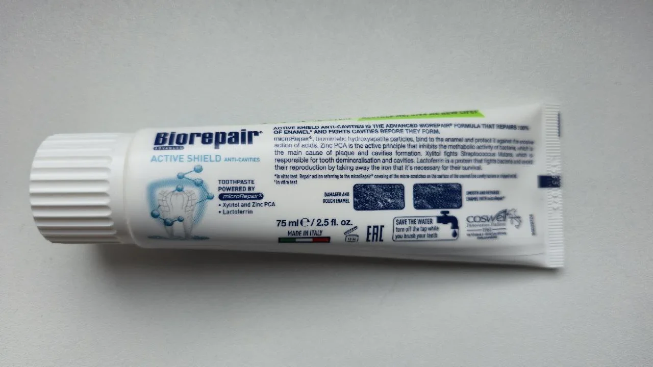 Biorepair je italská značka, která se zaměřuje na regeneraci zubní skloviny. Klíčovou složkou jsou tzv. microRepair částice, což je směs hydroxyapatitu. To je látka, ze které je tvořena lidská sklovina a zubovina. Jejich úkolem je opravovat mikroskopické trhlinky ve sklovině, snižovat citlivost zubů a předcházet kazům. Pasta neobsahuje fluorid, pokud se mu tedy chcete vyhnout, pasta tento účel splní.