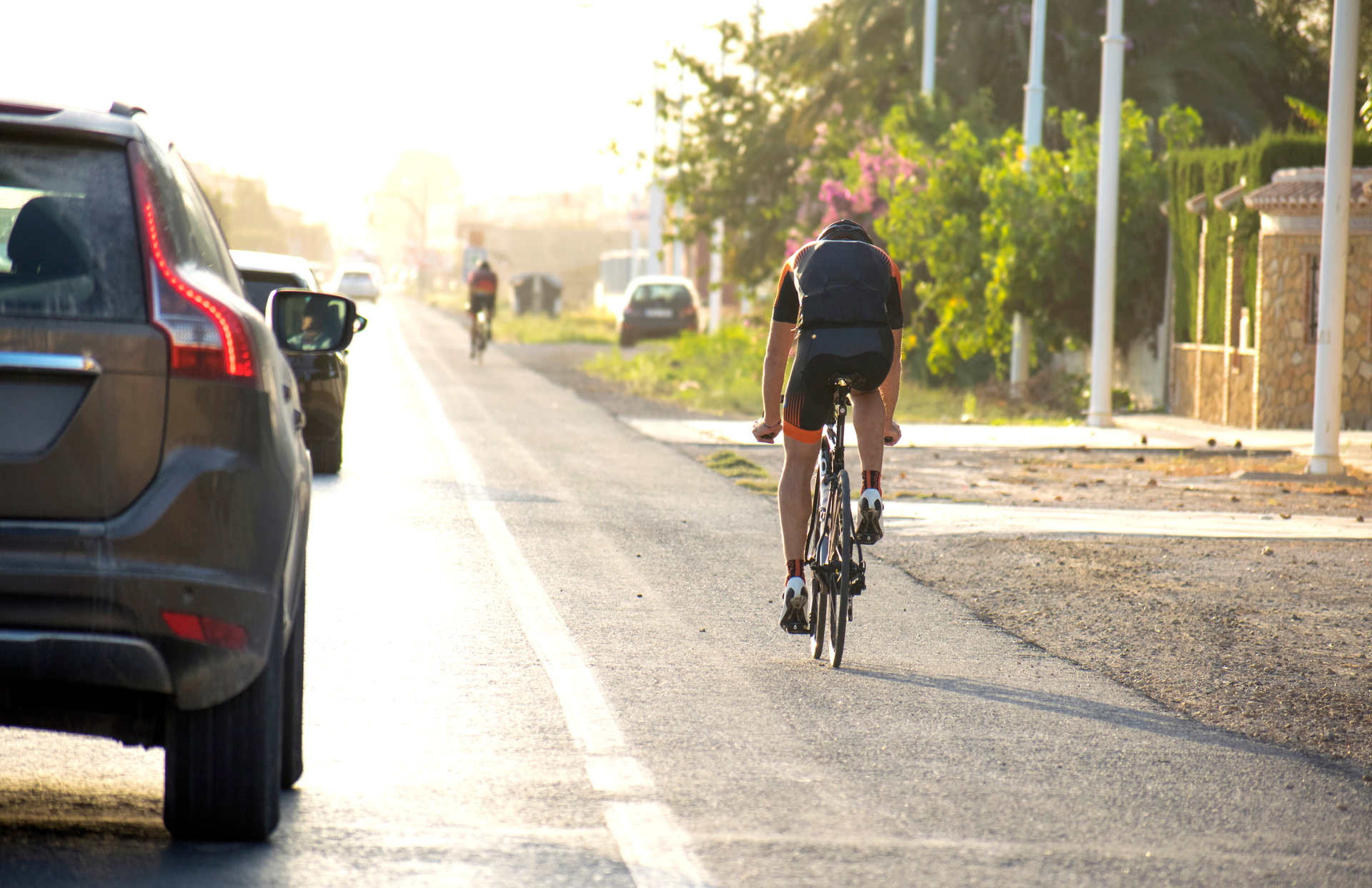 Foto: Shutterstock.com Při předjíždění cyklisty musí mít auto od jeho kola alespoň 1,5 metru volného prostoru. V zónách s rychlostí do 30 km/h klesá tato hranice na 1 metr.