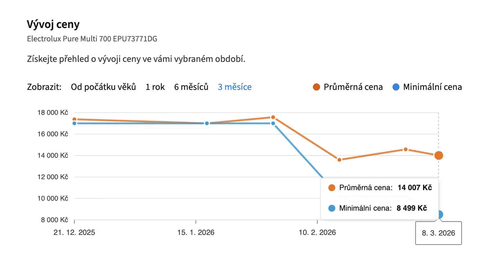 Foto: Heureka (se svolením)Vývoj ceny čističky vzduchu Electrolux Pure Multi 700 EPU73771DG