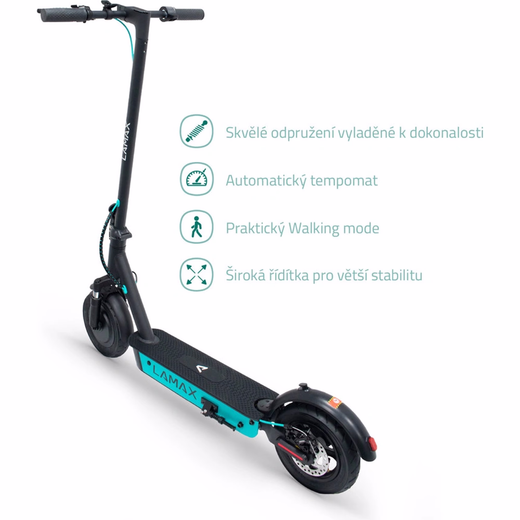 - Kola a odpružení – Pro maximální pohodlí při jízdě je LAMAX eCruiser SC30 vybavena dvěma 10″ nafukovacími pneumatikami se zesíleným pláštěm, které lépe odolávají defektům. Kvalitní přední a zadní tlumiče zajišťují komfortní jízdu i na nerovném povrchu, dlažebních kostkách nebo lehčím terénu.