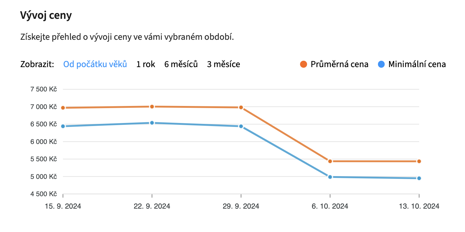 Vývoj cen můžete sledovat na grafu níže (zdroj: heureka.cz), kde lze jasně vidět, že je aktuální cena nejnižší za celé prodejní období.