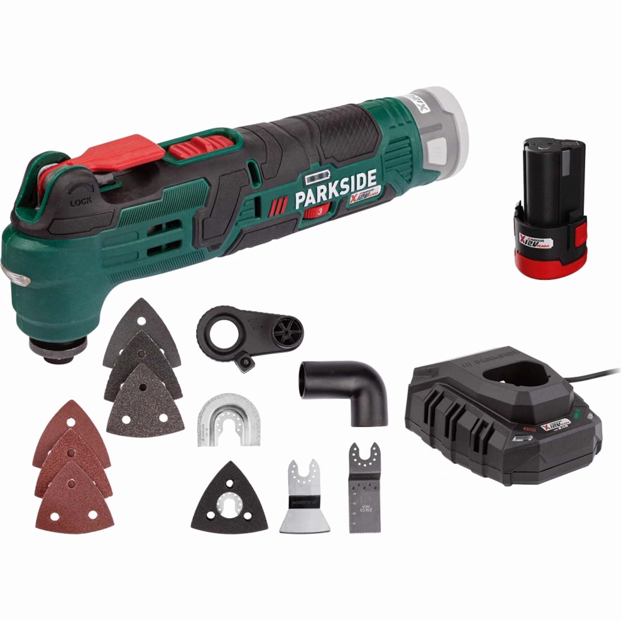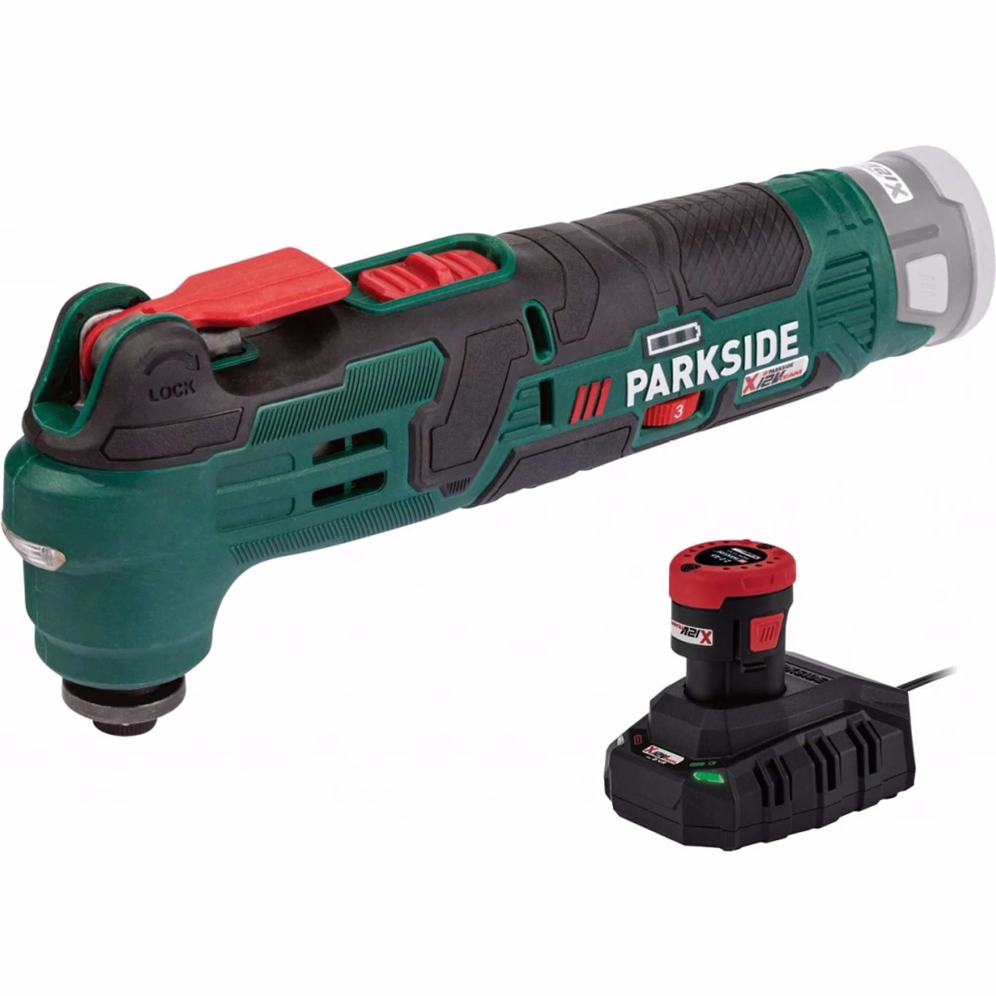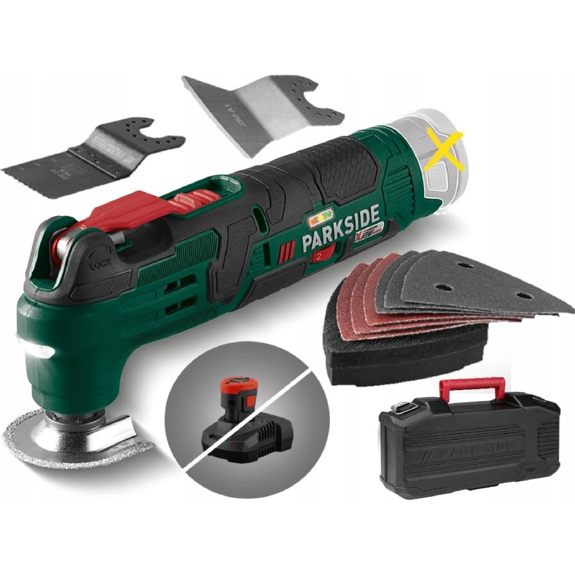 - Technické parametry – Nářadí PAMFW 12 D4 pracuje s otáčkami naprázdno v rozmezí 5 000 až 20 000 min⁻¹ a má oscilační úhel 3,2°. Je vyrobeno z plastu a skelného vlákna, s kompaktními rozměry přibližně 25,5 x 5,6 x 10,3 cm a hmotností přibližně 795 g. Produkt je také vybaven 3stupňovým ukazatelem stavu akumulátoru a je kompatibilní s akumulátorem série „PARKSIDE X 12 V Team“.