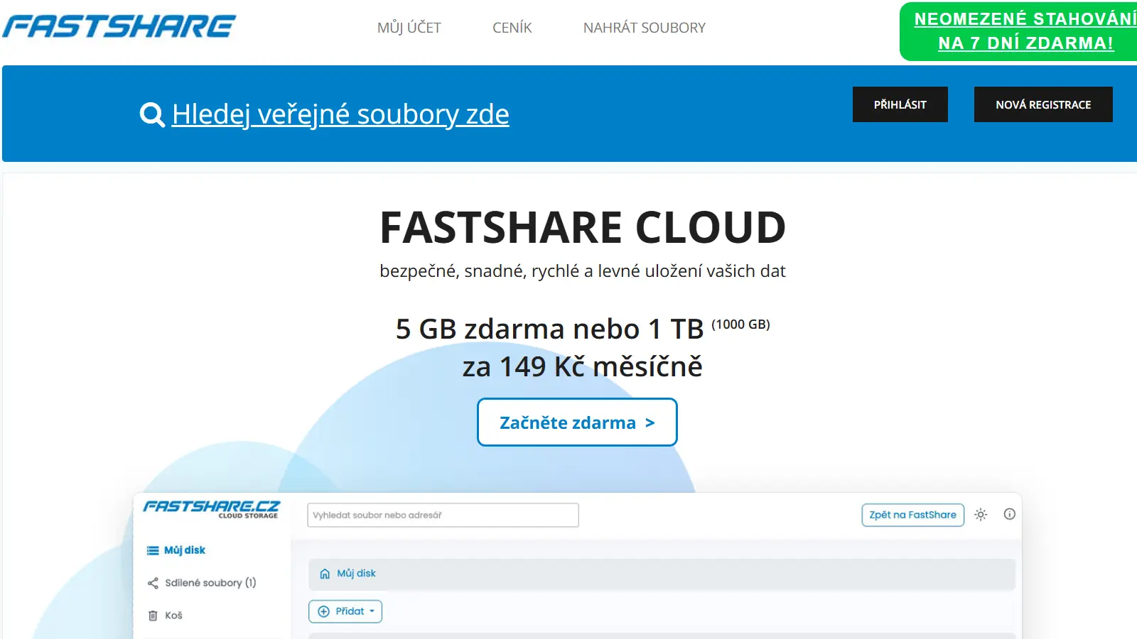Úvodní homepage platformy Fastshare.cz