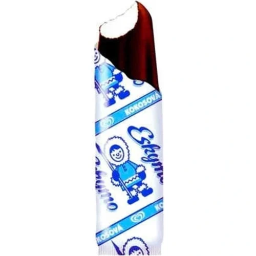 - Kokosové Eskymo je česká klasika. Prodává se v bílomodrém obalu.