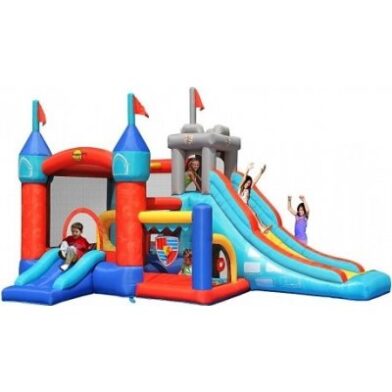 V balení najdete vysoce kvalitní dmychadlo s certifikací CE/UL, vzduchový ventilátor pro nafukovací skluzavku a vzduchové čerpadlo do bazénu. Nechybí ani opravná sada či bezpečnostní pravidla pro používání. Objem bazénu výrobce bohužel neudává, ale lze předpokládat, že pro napuštění budete potřebovat pořádnou dávku vody a trpělivosti.