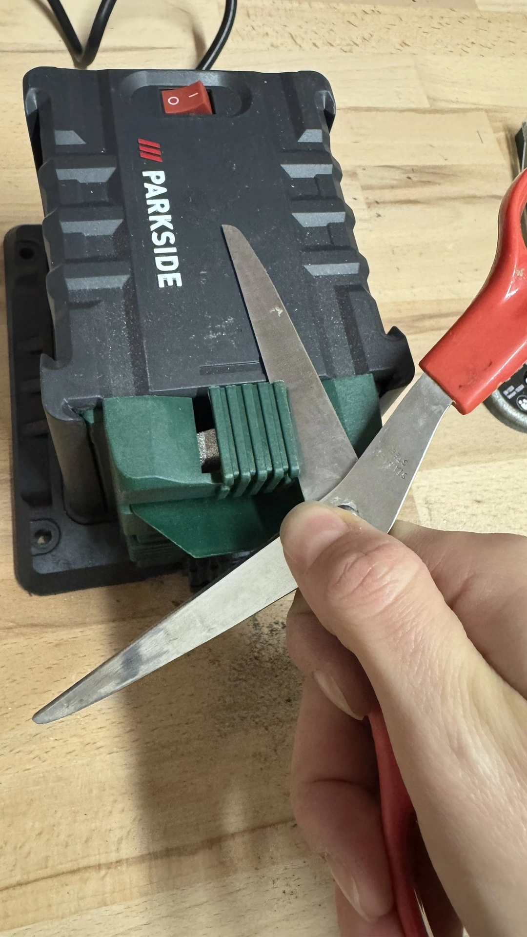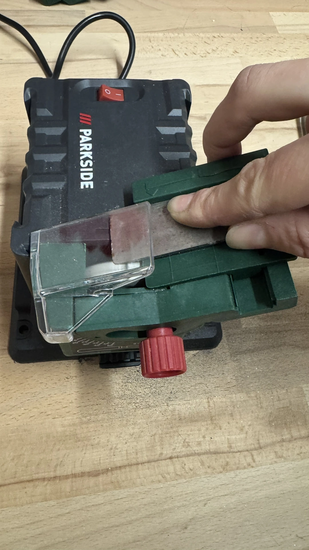 V testu se nepodařilo dosáhnout konzistentně použitelného výbrusu vrtáků (problém se středem špičky i úhlem), dláta se kvůli malému kotouči „vykusovala“ do důlku a nože/nůžky dopadly nejhůř – místo ostří vznikalo zubaté poškození. Navíc je tu nepříjemný bezpečnostní aspekt: nástroj se drží prsty blízko kotouče a při „kopnutí“ hrozí úraz.