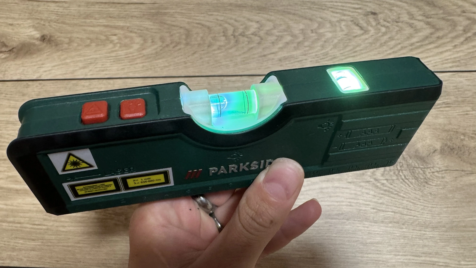 Laser jsem pak ověřila proti samonivelačnímu liniovému laseru Parkside PKLL 7 E4 – odchylka vycházela zhruba 2 mm na 50 cm, tedy cca 4 mm na 1 m. Paprsek byl navíc slabý, s malým dosahem a na koncích se „třepil“, takže přesné měření šlo těžko.