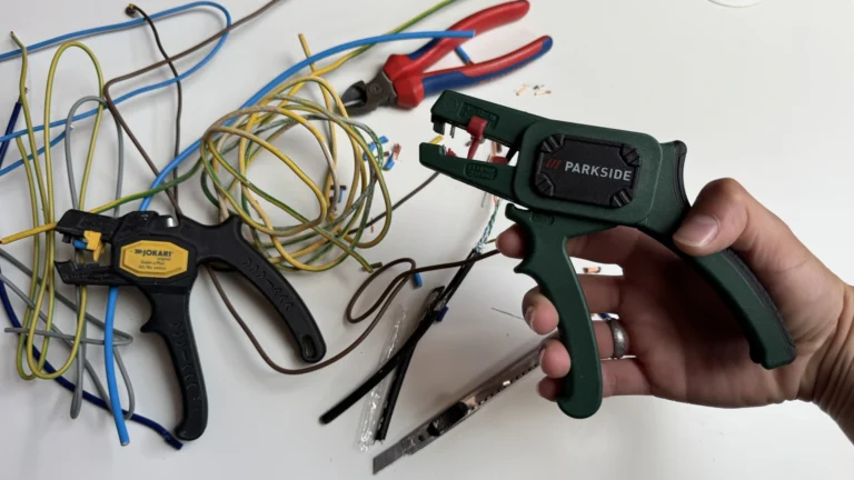 U odizolovacích kleští je zásadní spolehlivost a opakovatelnost. Parkside slibuje rozsah 0,5–4 mm² a navíc řezací zařízení. Praktický test ale ukázal, že kleště fungují uspokojivě hlavně u tenčích vodičů – zhruba do 1,5 mm².