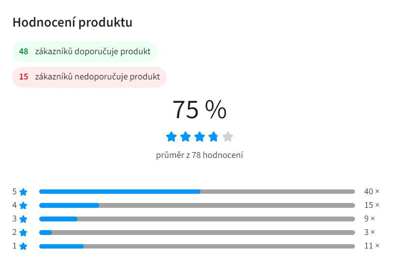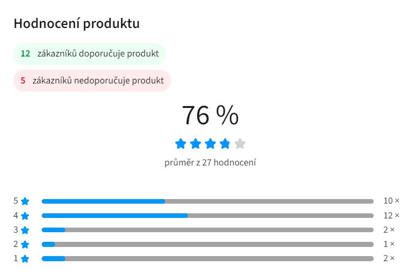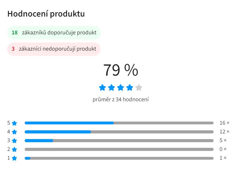 * Hodnocení jsou převzata z portálu Heureka.cz a vyjadřují spokojenost uživatelů, kteří produkt ohodnotili. Vypovídající hodnota takových recenzí je omezená s jejich počtem a nelze ji považovat za jediný ukazatel kvality produktu.
