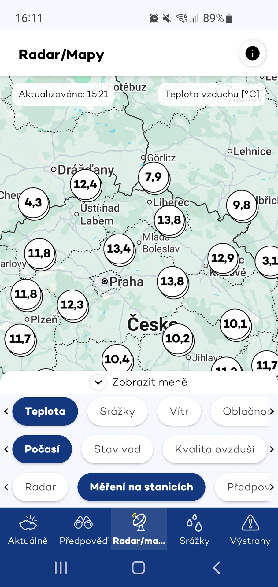 - Informace z aplikací ČHMÚ, Klara a Weawow