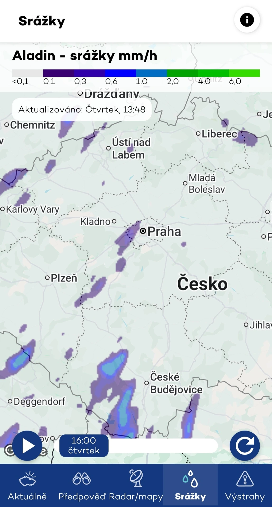 Oficiální aplikace Českého hydrometeorologického ústavu čerpá data z modelu ALADIN. Přestože tato aplikace nevyniká v uživatelském hodnocení, nabízí podrobné a aktuální informace zaměřené na situaci v České republice. Poskytuje proto i výstrahy na nebezpečné jevy pro lokalitu nebo lokality, které si uživatel nastaví ke sledování.