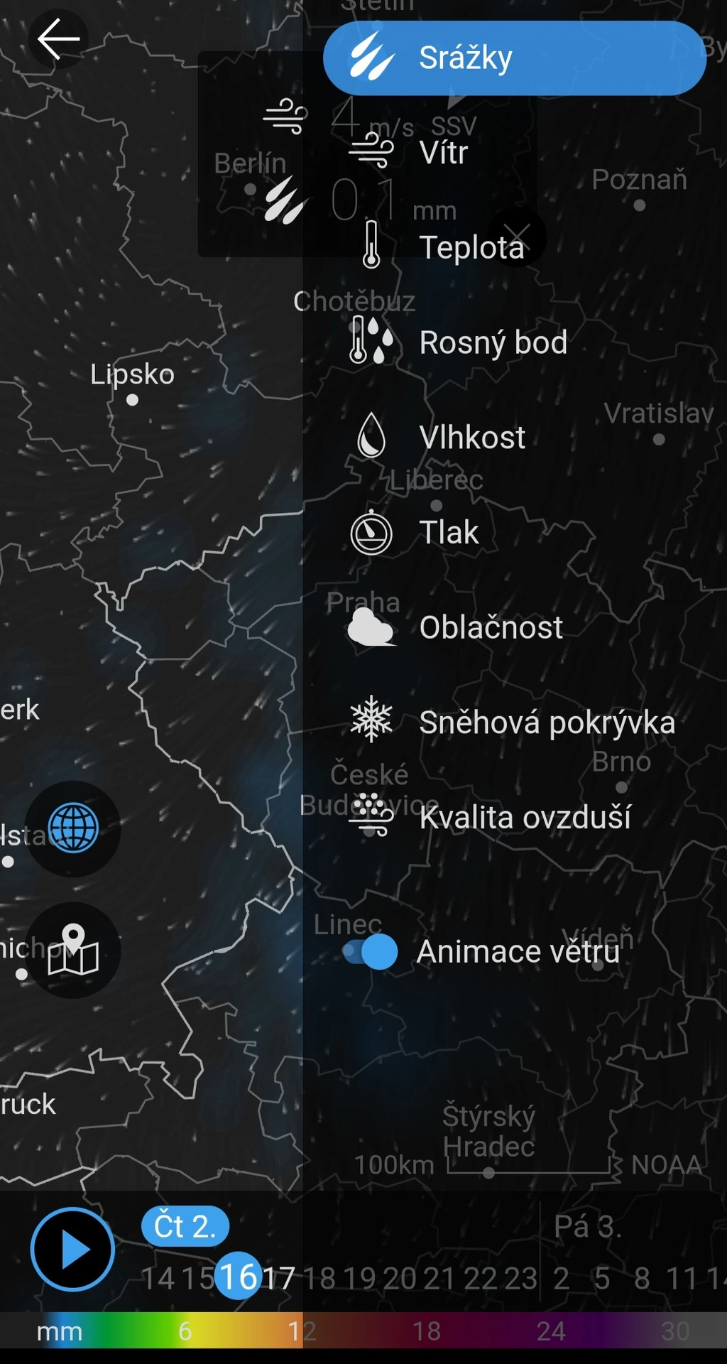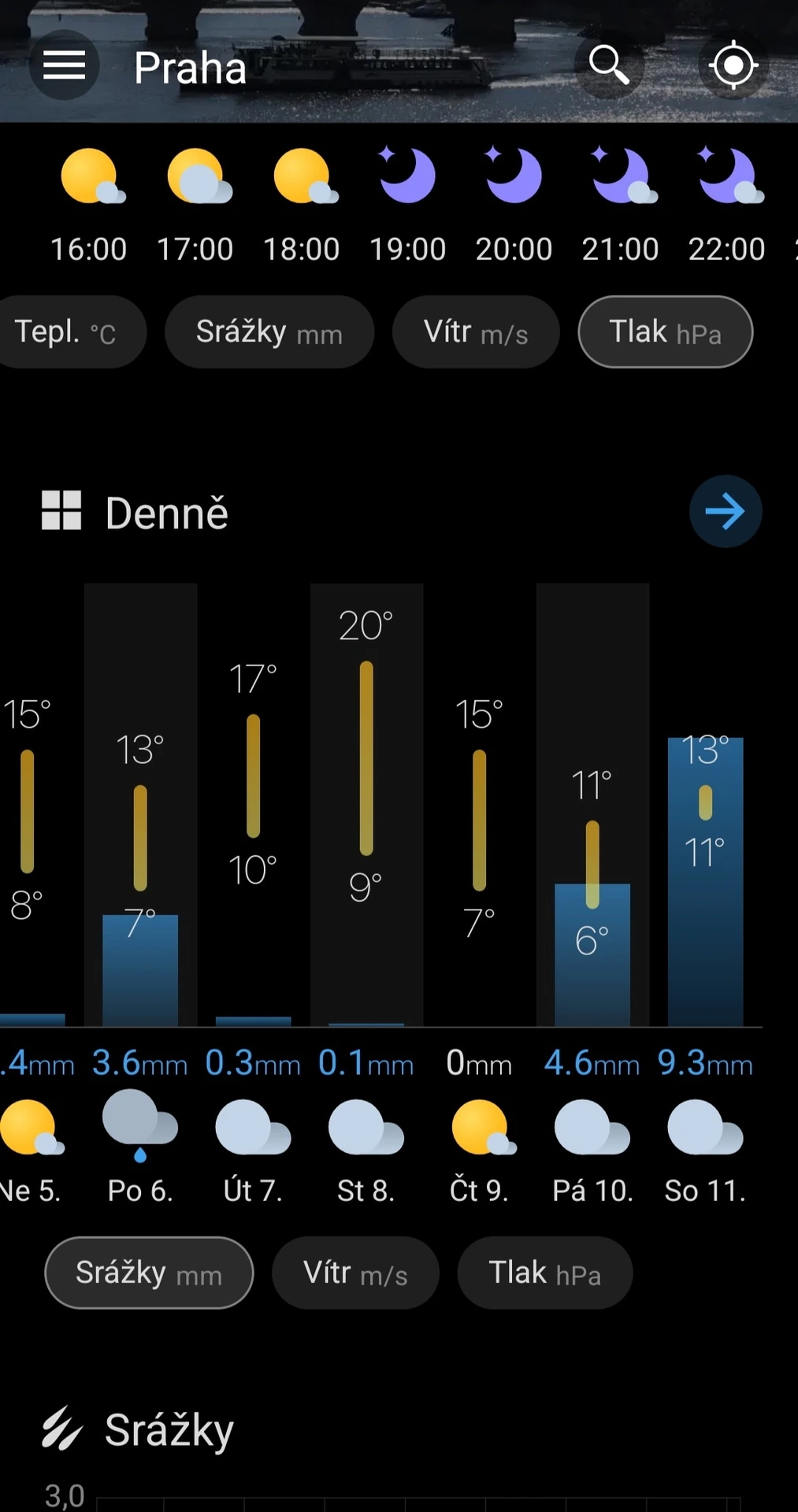 Kromě detailní hodinové předpovědi pro 23 hodin dopředu nabízí předpověď až na deset dní. Nechybí ani názorná mapa pro zobrazení srážek, větru, oblačnosti a dalších parametrů. Po zorientování se a přizpůsobení zobrazení řadíme aplikaci k přehlednějším. Úvodní fotka se mění a může působit rušivě, její zobrazení ale můžete úplně vypnout. Tuto aplikaci jsme do našeho sledování nezařadili.