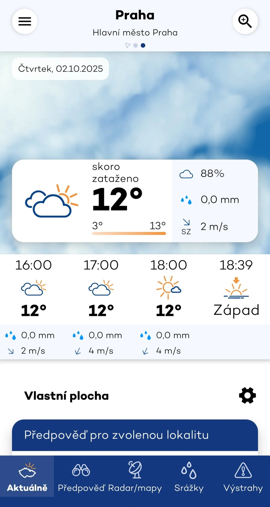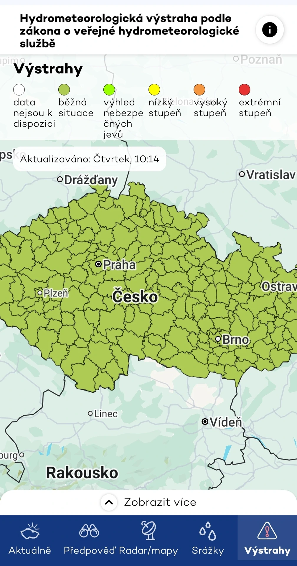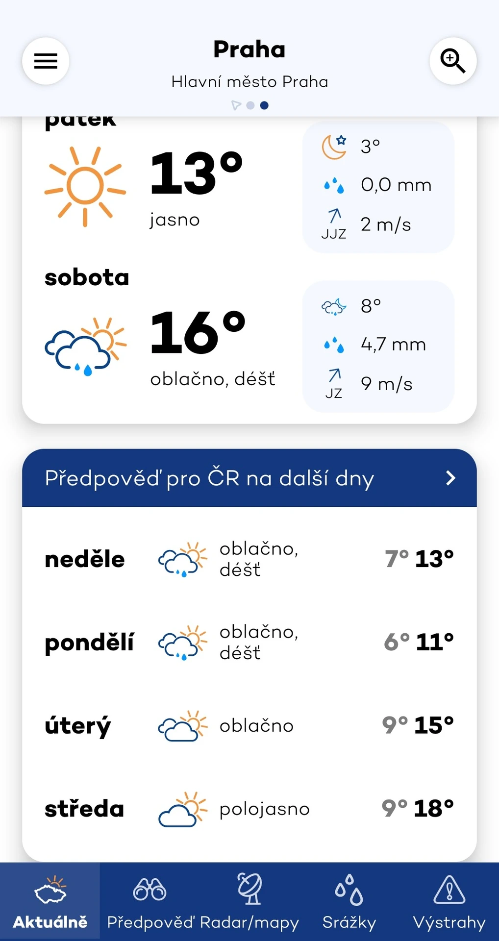 Oficiální aplikace Českého hydrometeorologického ústavu čerpá data z modelu ALADIN. Přestože tato aplikace nevyniká v uživatelském hodnocení, nabízí podrobné a aktuální informace zaměřené na situaci v České republice. Poskytuje proto i výstrahy na nebezpečné jevy pro lokalitu nebo lokality, které si uživatel nastaví ke sledování.