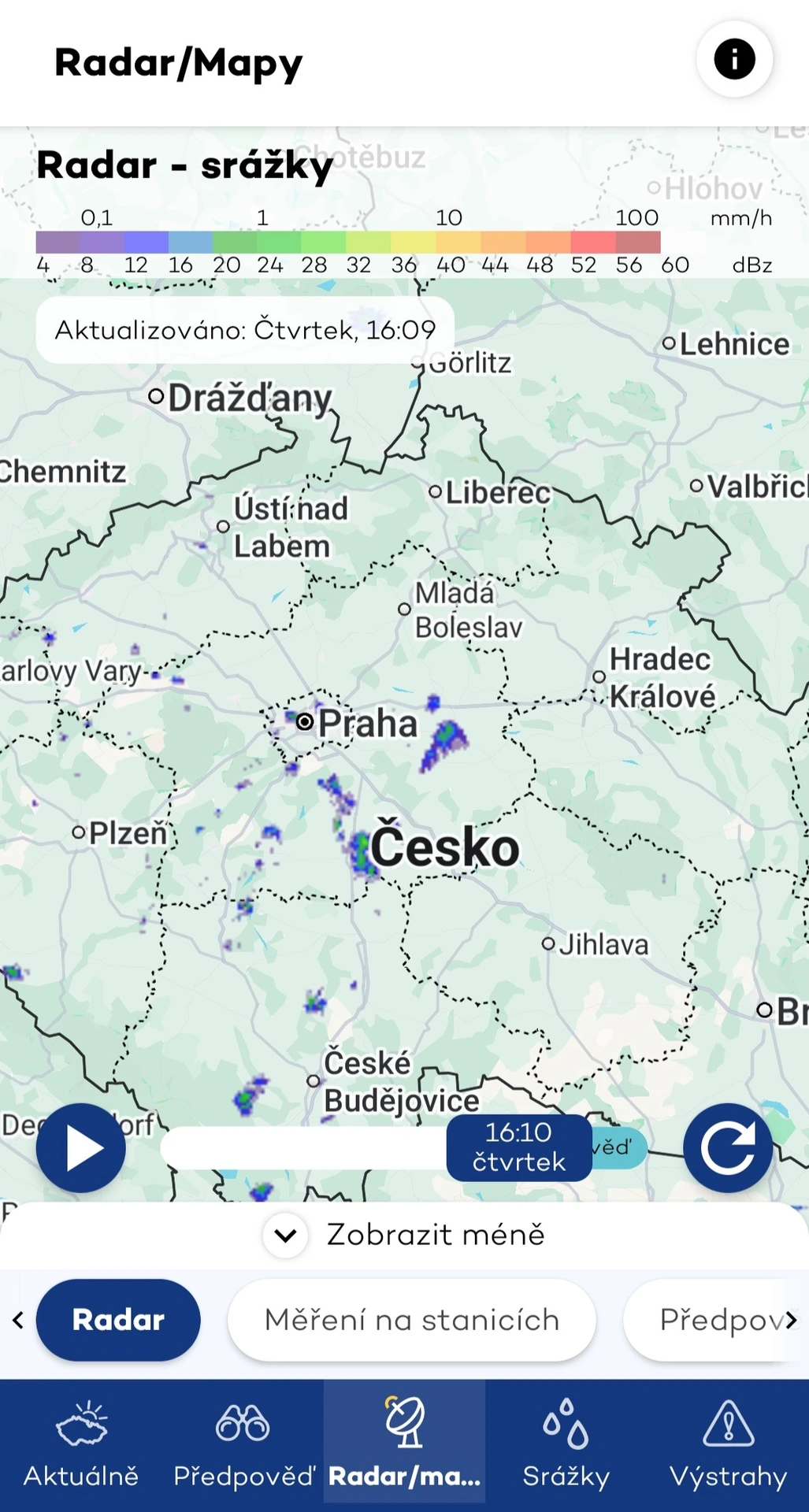 Kromě grafického zobrazení předpovědí poskytuje i textové, které píše meteorolog. Nabízí také detailní radar pro srážky pět minut dopředu a mapu srážek na 58 hodin dopředu po hodinách, která ale nepatří k nejpřesnějším. Její zobrazení je i přes větší množství poskytovaných informací přehledné. V našem uživatelském testování se její předpovědi nejvíc blížily skutečnosti.