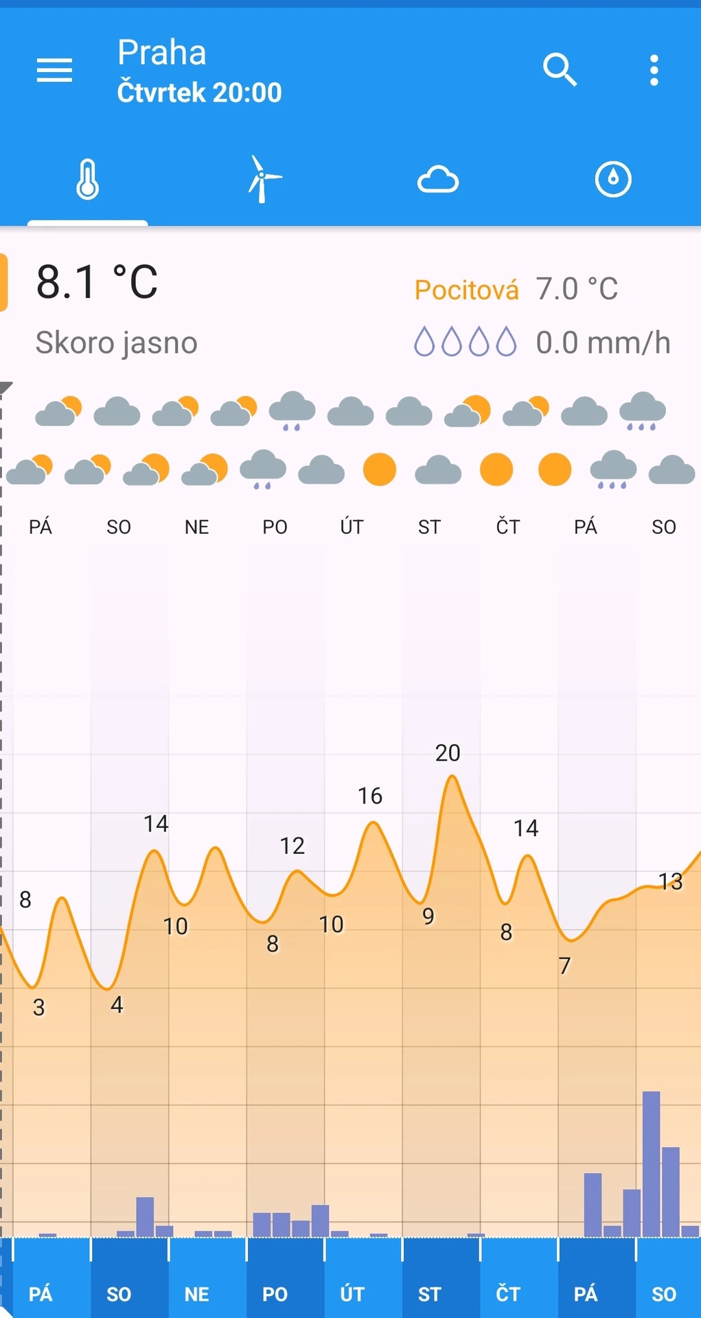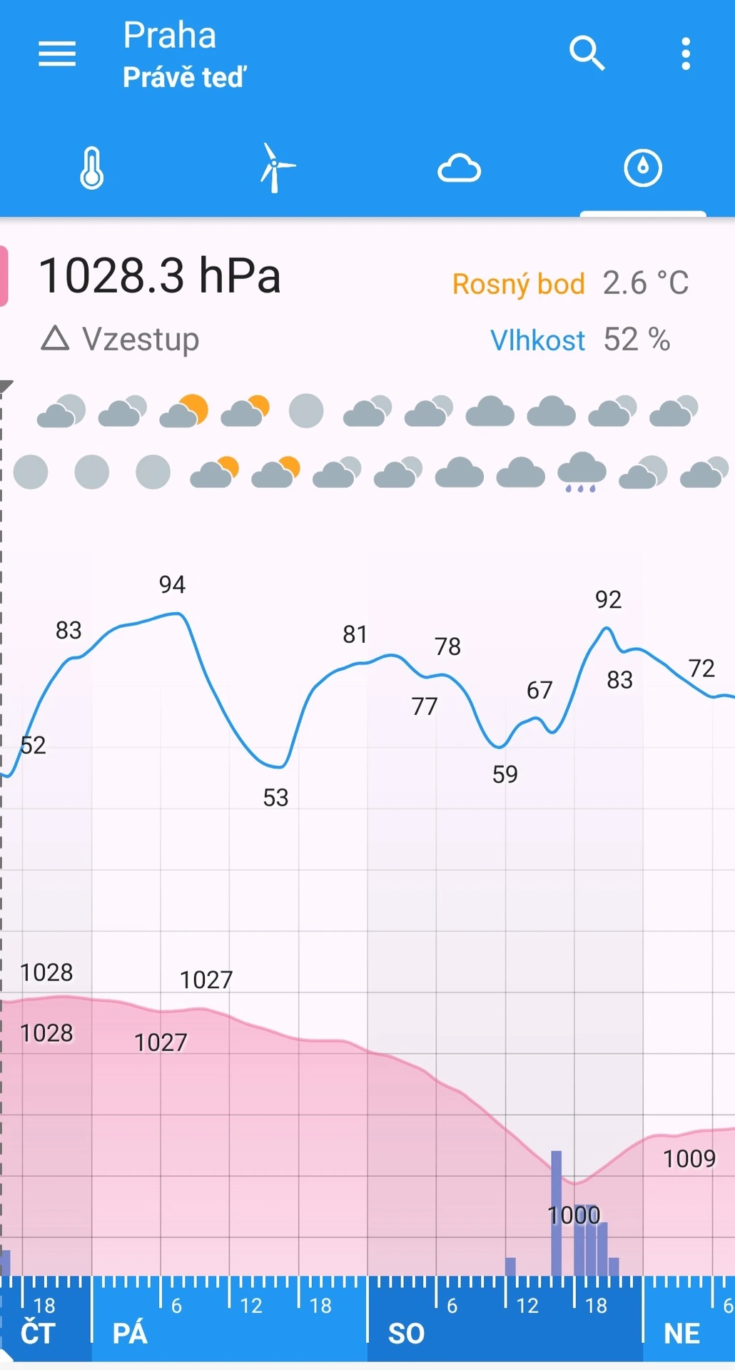 - Nezobrazuje rozšířené parametry předpovědi