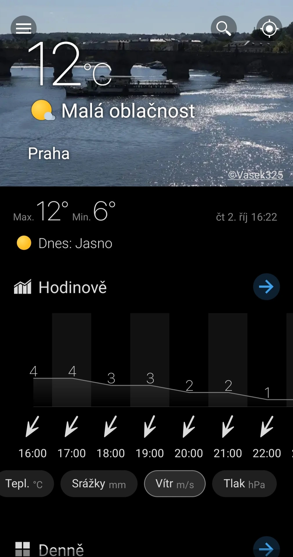 Kromě detailní hodinové předpovědi pro 23 hodin dopředu nabízí předpověď až na deset dní. Nechybí ani názorná mapa pro zobrazení srážek, větru, oblačnosti a dalších parametrů. Po zorientování se a přizpůsobení zobrazení řadíme aplikaci k přehlednějším. Úvodní fotka se mění a může působit rušivě, její zobrazení ale můžete úplně vypnout. Tuto aplikaci jsme do našeho sledování nezařadili.