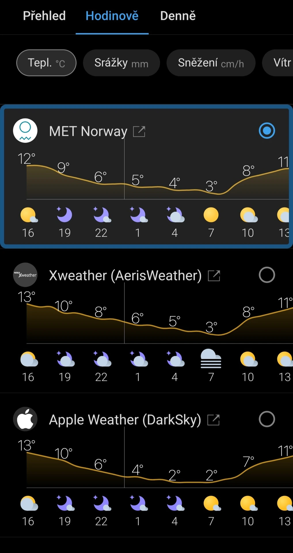 - Tip: Na podrobné výsledky přesnosti předpovědi pěti oblíbených aplikací počasí se můžete podívat v tomto článku.