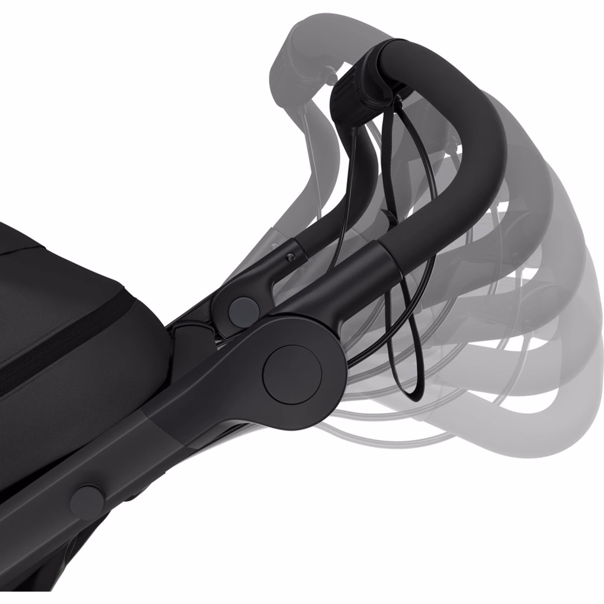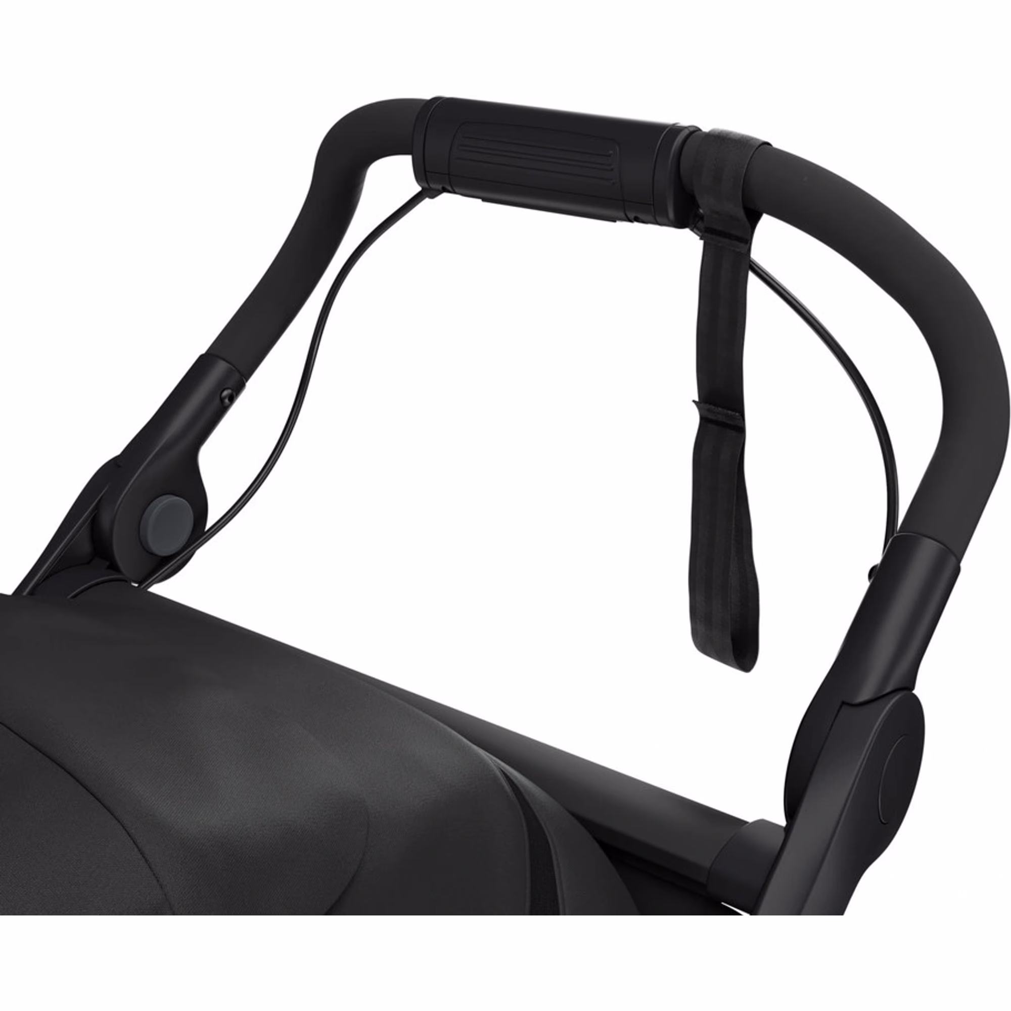 Většina kočárků disponuje pouze nožní brzdou, která má většinou různé podoby pedálu a je určena k zabrždění stojícího kočárku. Thule je navíc vybaveno brzdou ruční, která zvyšuje bezpečnost jízdy. Kočárek s ní přibrzdíte z prudkého kopce nebo si snáze poradíte na náledí. Ruční brzda se nachází na rukojeti, která je velmi dobře ergonomicky řešená a lze ji výškově upravit.