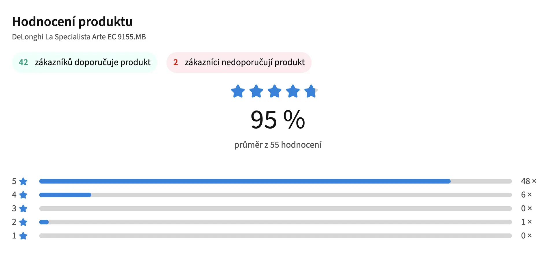 DeLonghi La Specialista Arte EC 9155.MB na Heurece nyní sklízí hodnocení 95 % a označen je jako TOP 9. model v kategorii. S cenovkou 10 tisíc korun, velmi přívětivým designem a kvalitou příznačnou pro kávovary této značky může přinést opravdu autentický baristický zážitek do vašeho domova. O jeho spolehlivosti vypovídá také značka kvality dTest.