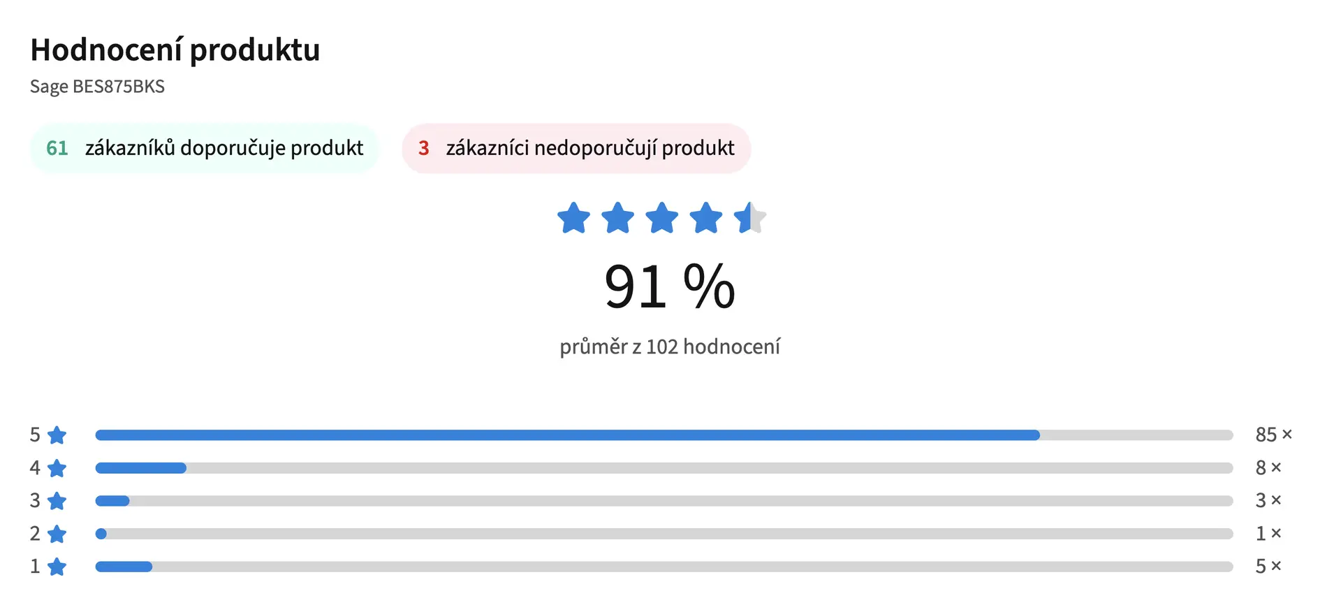 Sage BES875BKS už má na Heurece přes 100 hodnocení a doporučuje jej 95 % uživatelů