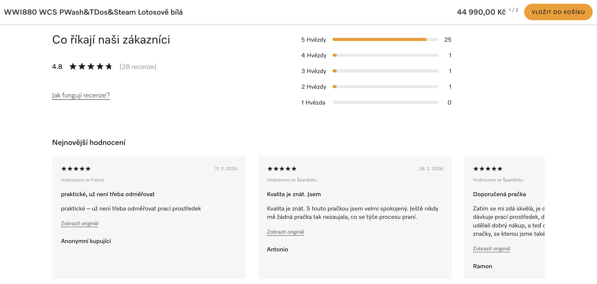 Foto: Vlastní screenshot, AlzaNa Alze pračku doporučuje 99 % zákazníků