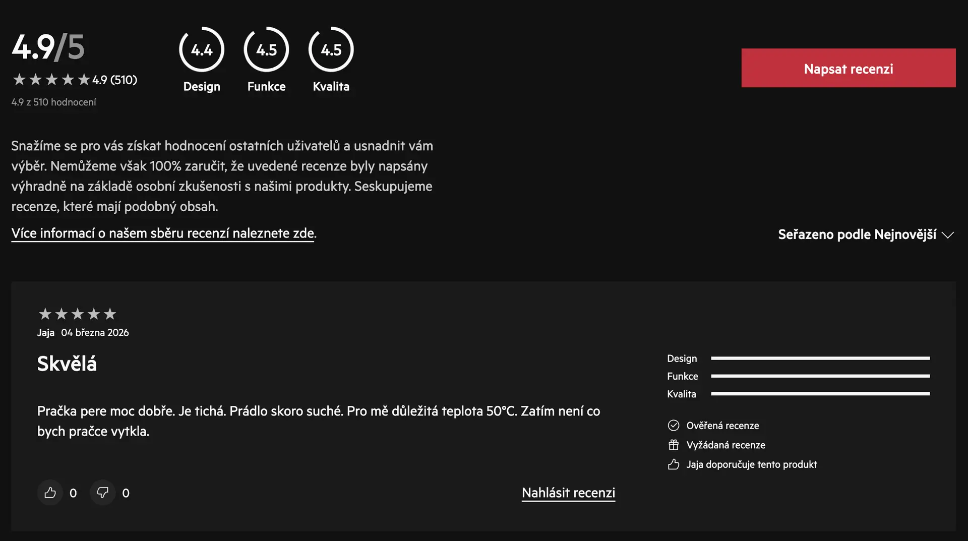 Na Heurece je tato pračka nyní označena jako TOP 5. model v kategorii, což svědčí o její oblíbenosti.