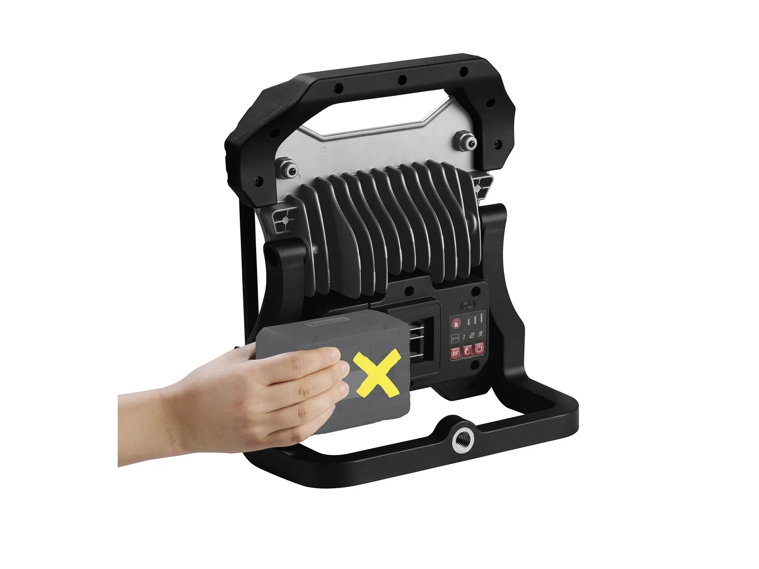 Kontrolní panel umožňuje ovládání režimů svícení, ukazuje stav nabití akumulátoru a nabízí možnost ovládání a synchronizace až 3 dalších reflektorů PPBSTA 20-Li. S akumulátorem 20V vydrží reflektor při plné intenzitě svítit okolo 25 min (2 Ah), resp. 50 min (4 Ah), resp. 100 min (8 Ah). Díky dodávanému akumulátoru je možné reflektor napájet přímo ze sítě.